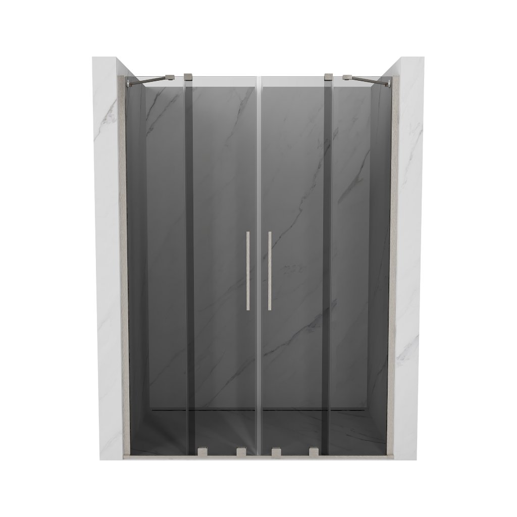 Mexen Velar Duo, posuvné sprchové dveře do otvoru 140 cm, 8mm šedé sklo, broušená ocel, 871-140-000-42-97