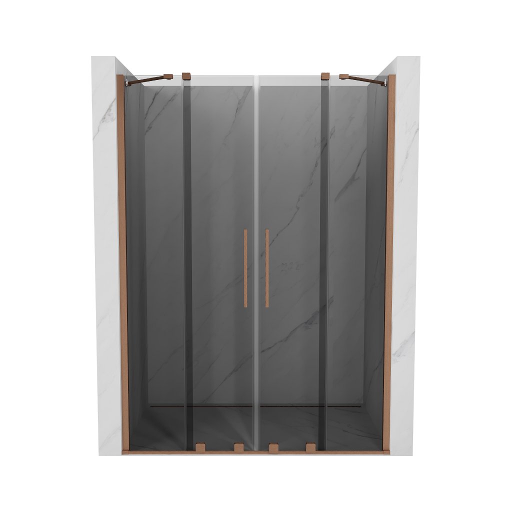 Mexen Velar Duo, posuvné sprchové dveře do otvoru 140 cm, 8mm šedé sklo, měděná matná, 871-140-000-42-65