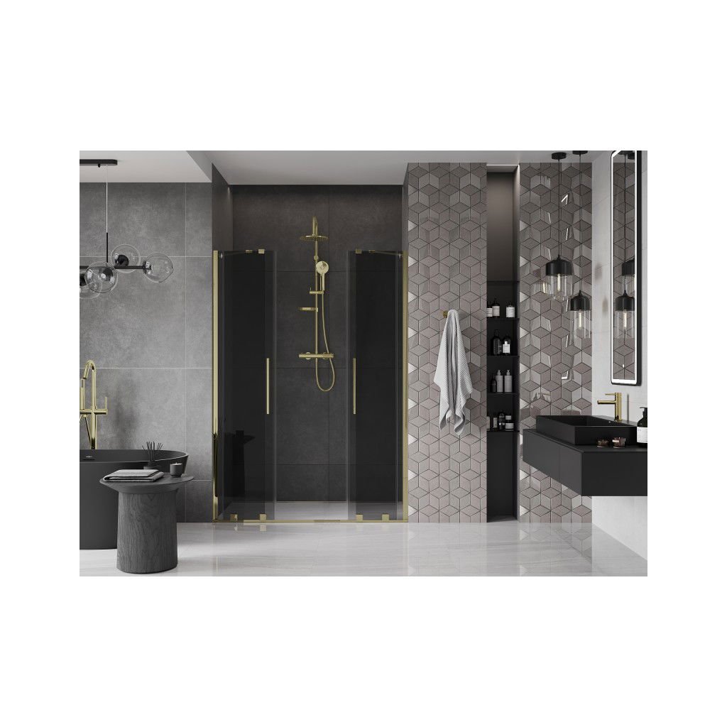 Mexen Velar Duo, posuvné sprchové dveře do otvoru 140 cm, 8mm šedé sklo, zlatá lesklá, 871-140-000-42-50
