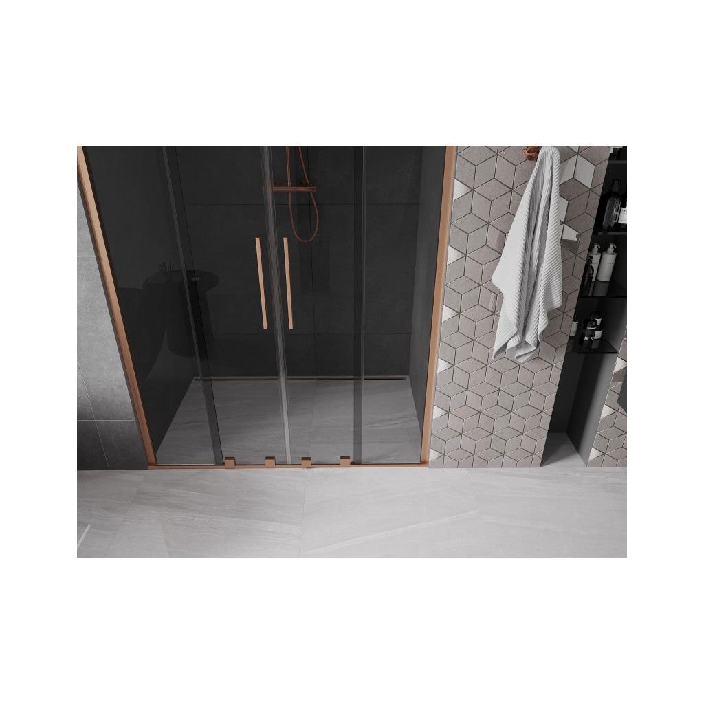 Mexen Velar Duo, posuvné sprchové dveře do otvoru 150 cm, 8mm šedé sklo, měděná matná, 871-150-000-42-65