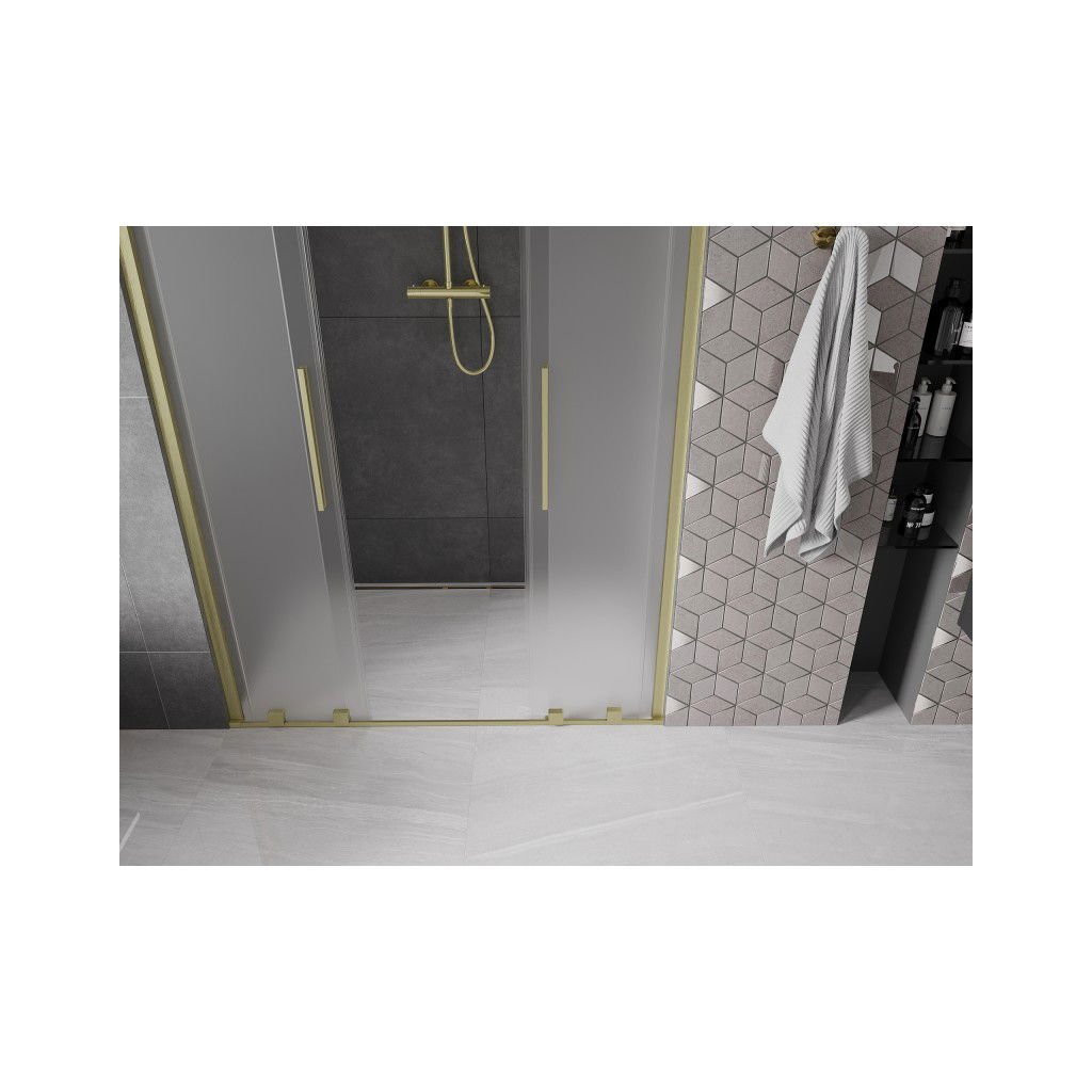 Mexen Velar Duo, posuvné sprchové dveře do otvoru 150 cm, 8mm sklo námraza, zlatá matná, 871-150-000-32-55