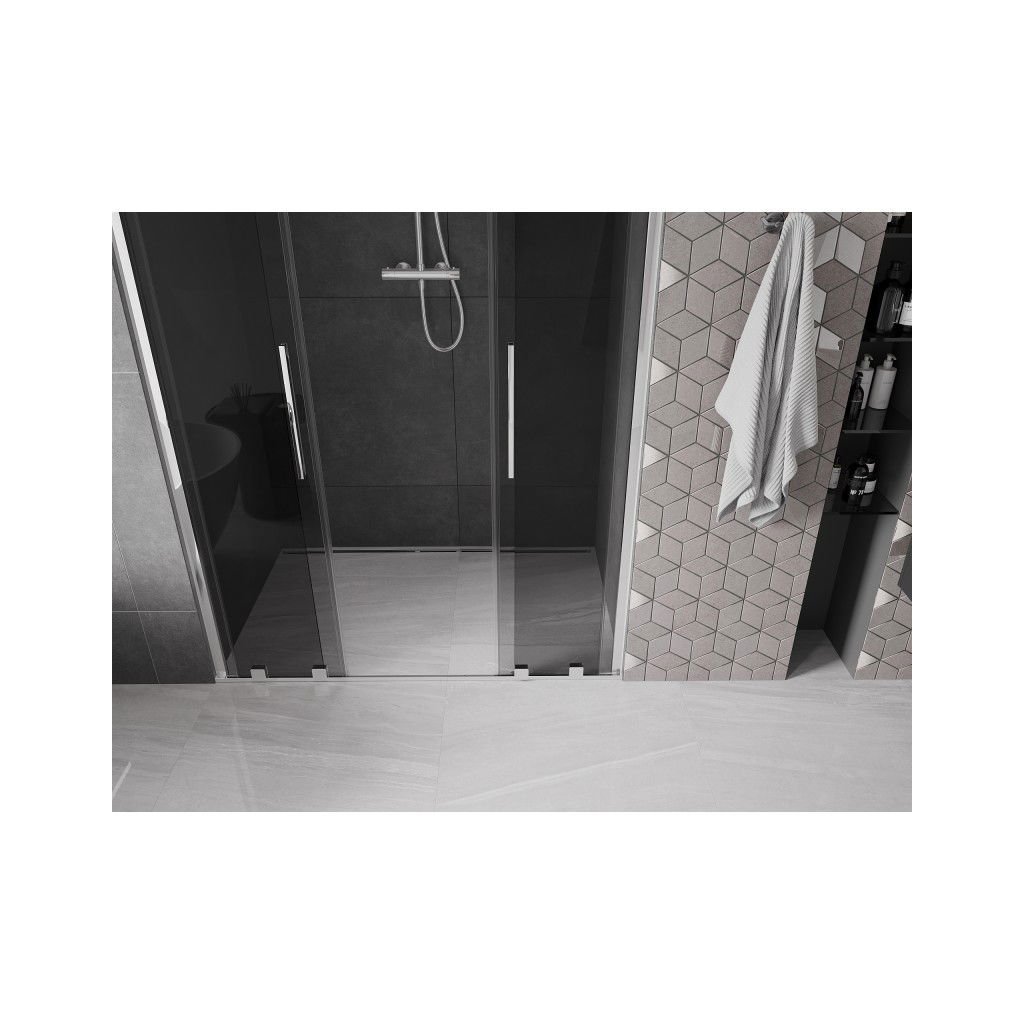 Mexen Velar Duo, posuvné sprchové dveře do otvoru 160 cm, 8mm šedé sklo, chromová, 871-160-000-42-01