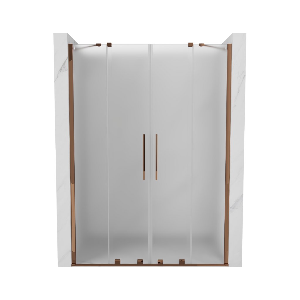 Mexen Velar Duo, posuvné sprchové dveře do otvoru 160 cm, 8mm sklo námraza, růžové zlato, 871-160-000-32-60