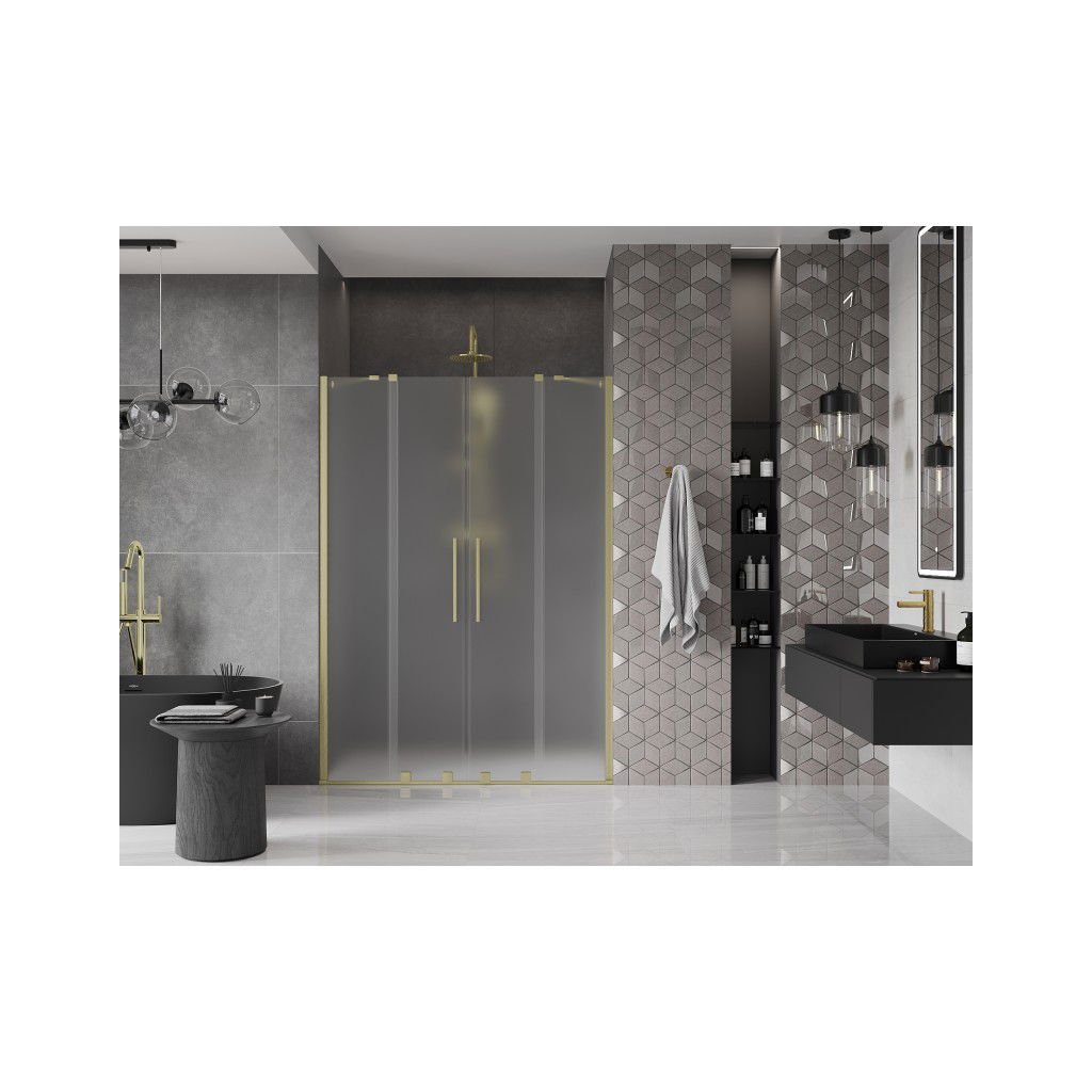 Mexen Velar Duo, posuvné sprchové dveře do otvoru 160 cm, 8mm sklo námraza, zlatá matná, 871-160-000-32-55