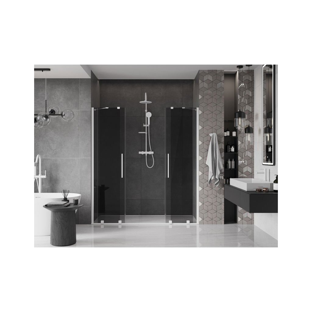 Mexen Velar Duo, posuvné sprchové dveře do otvoru 170 cm, 8mm šedé sklo, bílá matná, 871-170-000-42-20