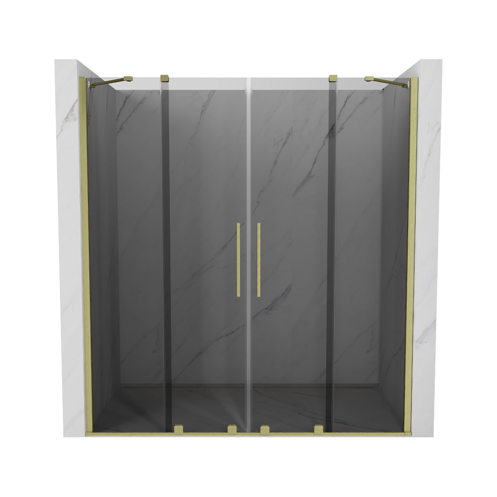 Mexen Velar Duo, posuvné sprchové dveře do otvoru 170 cm, 8mm šedé sklo, zlatá matná, 871-170-000-42-55