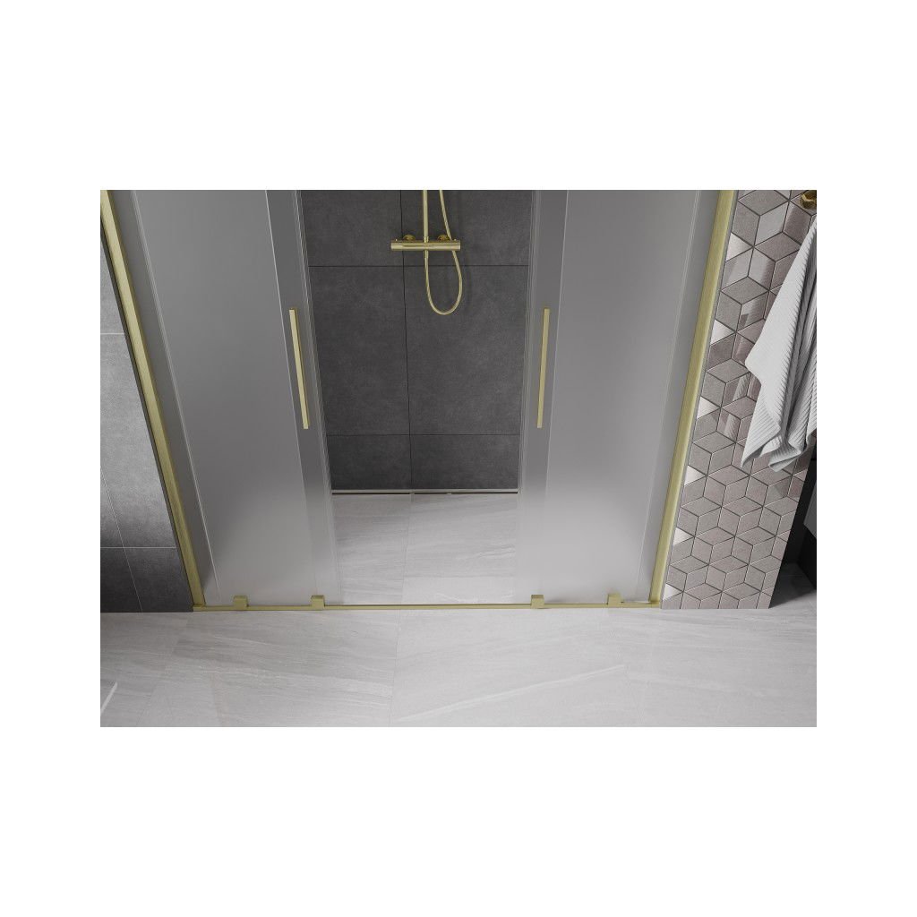 Mexen Velar Duo, posuvné sprchové dveře do otvoru 170 cm, 8mm sklo námraza, zlatá matná, 871-170-000-32-55