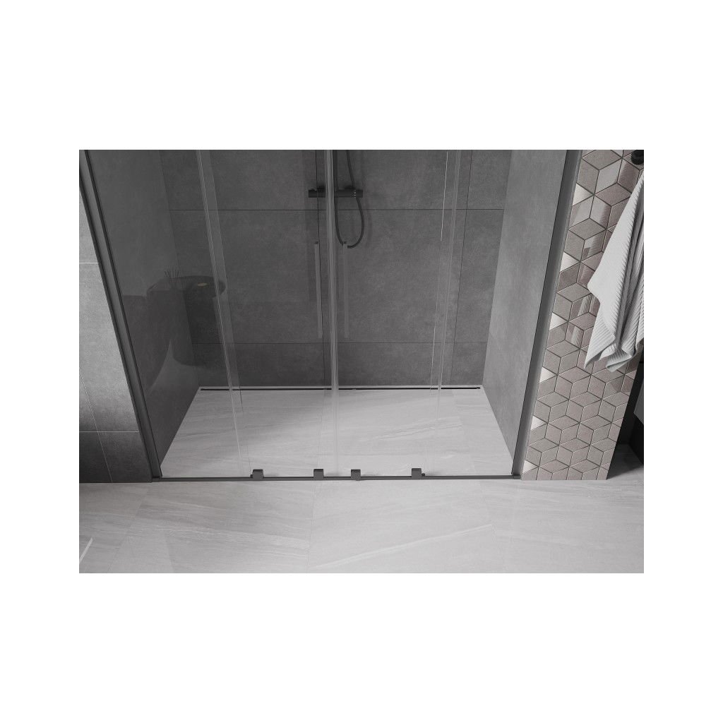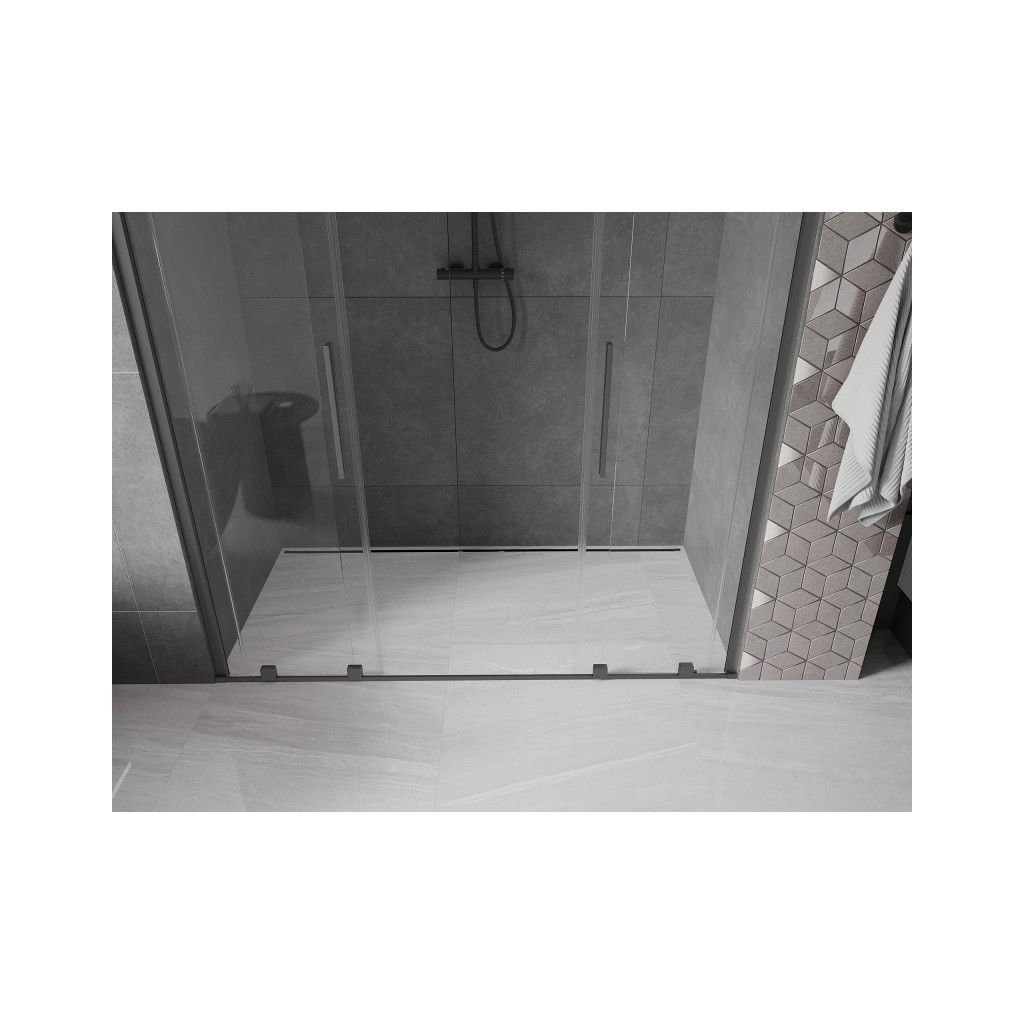 Mexen Velar Duo, posuvné sprchové dveře do otvoru 180 cm, 8mm čiré sklo, broušený grafit, 871-180-000-02-95