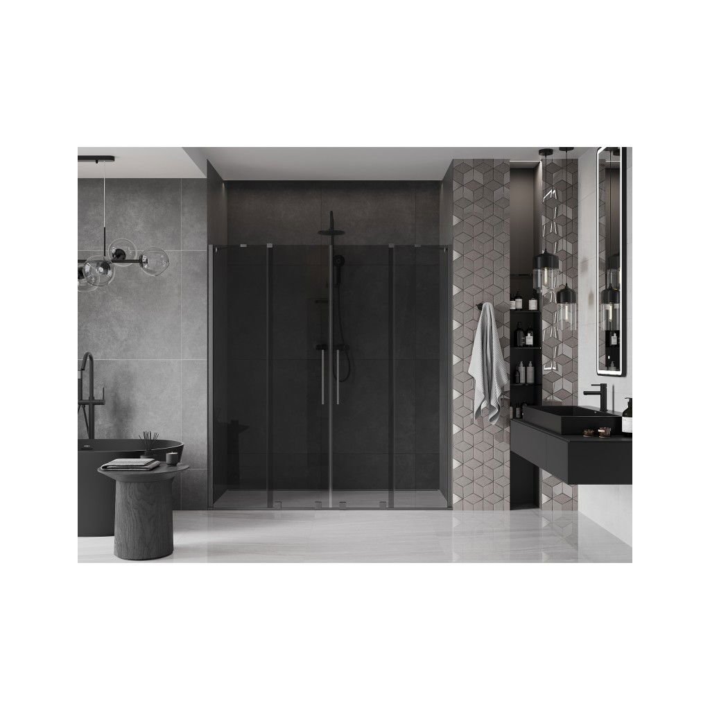 Mexen Velar Duo, posuvné sprchové dveře do otvoru 180 cm, 8mm šedé sklo, grafit broušený, 871-180-000-42-66