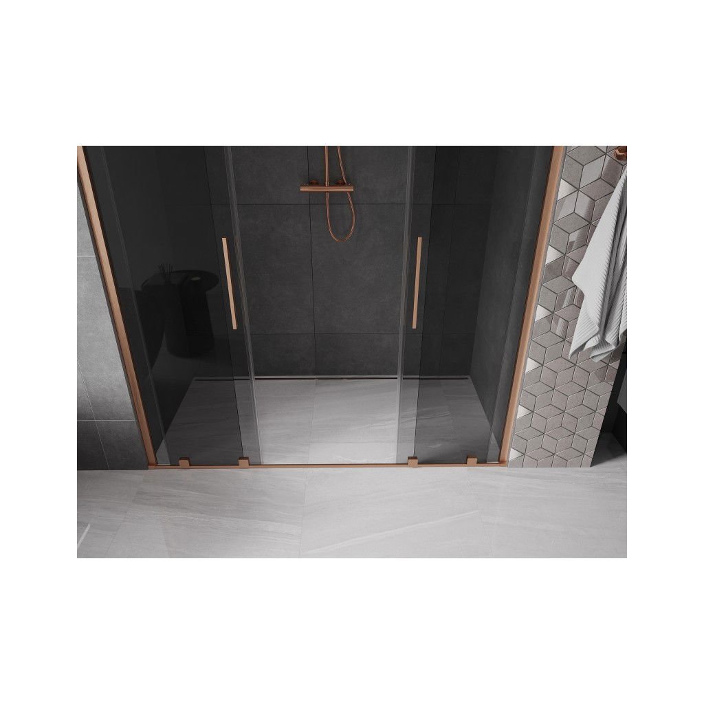 Mexen Velar Duo, posuvné sprchové dveře do otvoru 180 cm, 8mm šedé sklo, měděná matná, 871-180-000-42-65