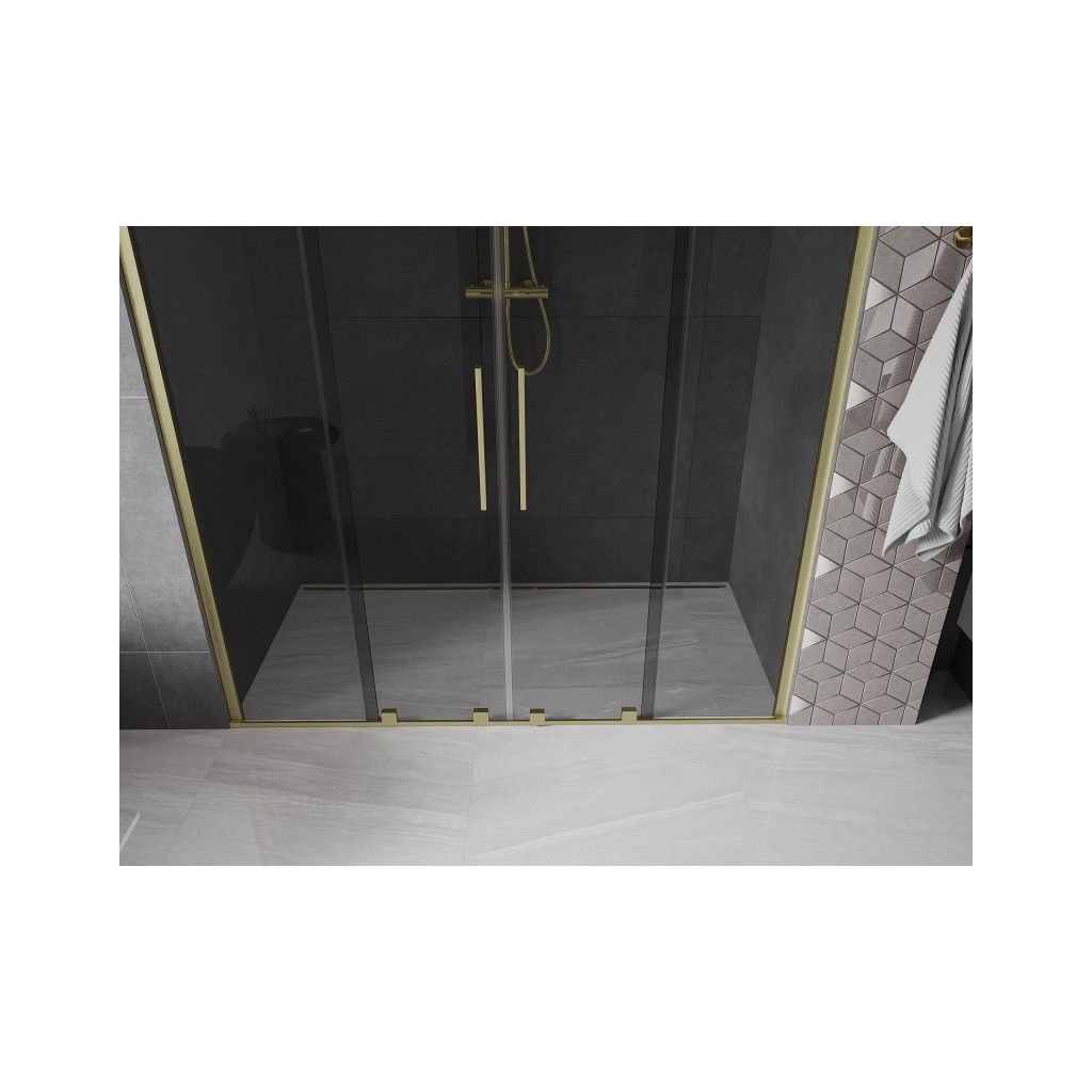 Mexen Velar Duo, posuvné sprchové dveře do otvoru 180 cm, 8mm šedé sklo, zlatá matná, 871-180-000-42-55