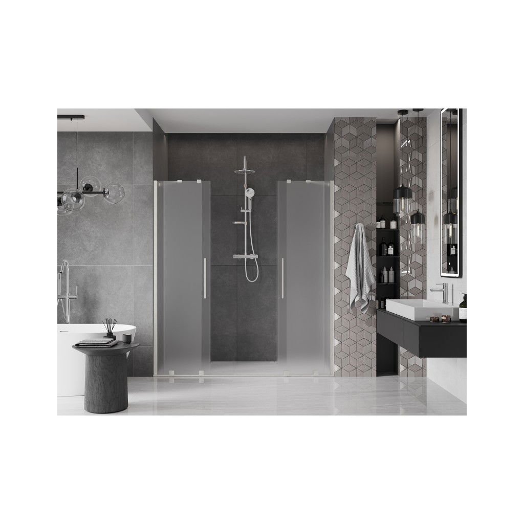 Mexen Velar Duo, posuvné sprchové dveře do otvoru 180 cm, 8mm sklo námraza, broušená ocel, 871-180-000-32-97