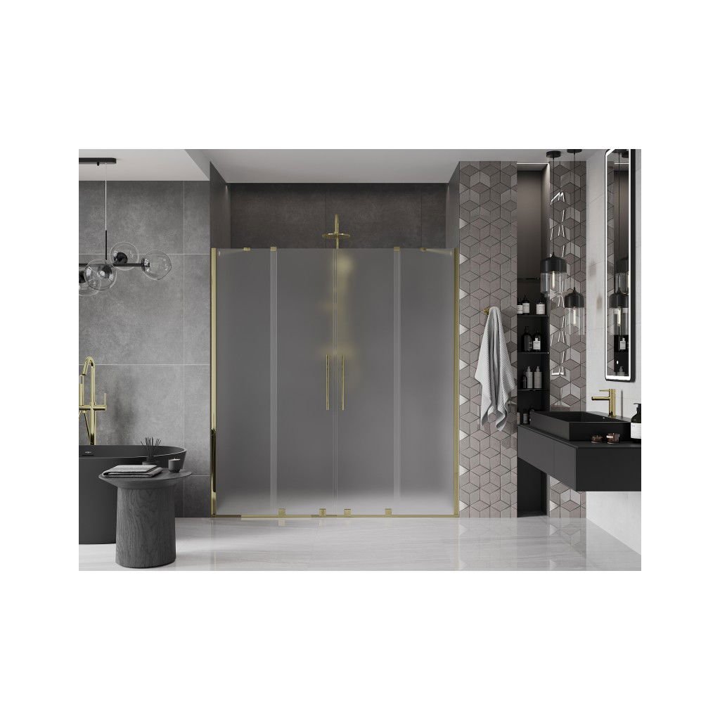 Mexen Velar Duo, posuvné sprchové dveře do otvoru 180 cm, 8mm sklo námraza, zlatá lesklá, 871-180-000-32-50