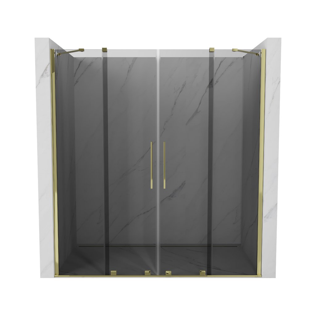 Mexen Velar Duo, posuvné sprchové dveře do otvoru 200 cm, 8mm šedé sklo, zlatá lesklá, 871-200-000-42-50