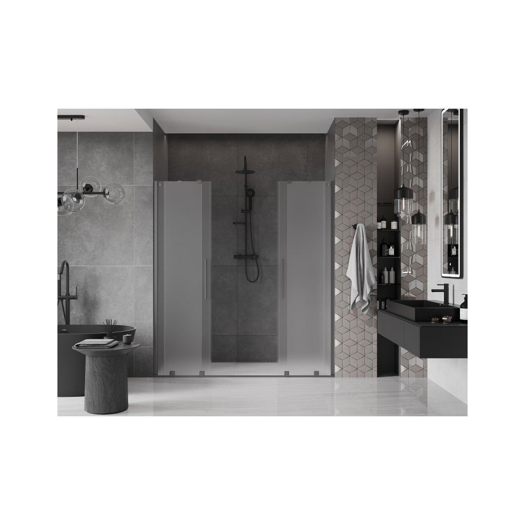 Mexen Velar Duo, posuvné sprchové dveře do otvoru 200 cm, 8mm sklo námraza, grafit broušený, 871-200-000-32-66