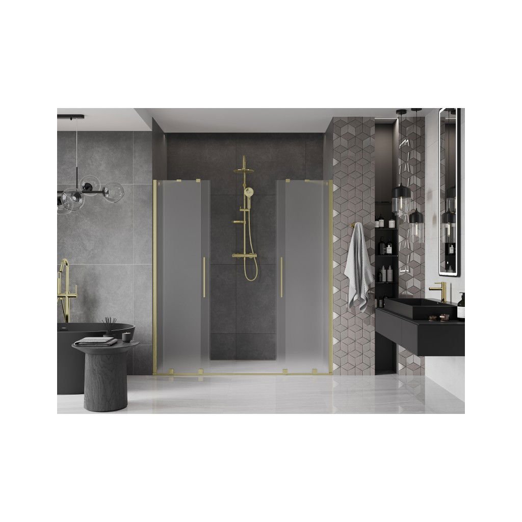 Mexen Velar Duo, posuvné sprchové dveře do otvoru 200 cm, 8mm sklo námraza, zlatá matná, 871-200-000-32-55
