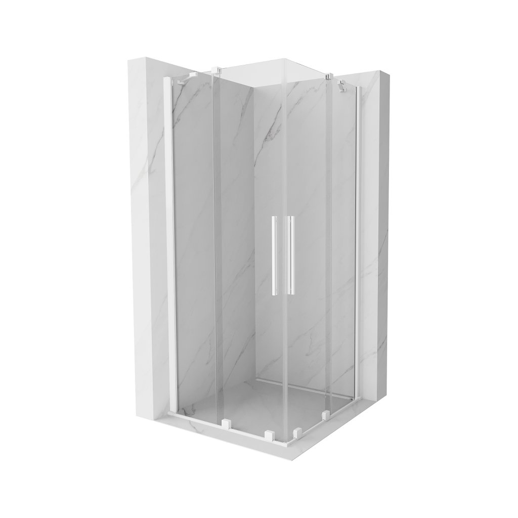Mexen Velar Duo, sprchový kout s posuvnými dveřmi 100(dveře) x 100(dveře) cm, 8mm čiré sklo, bílá, 871-100-100-02-20