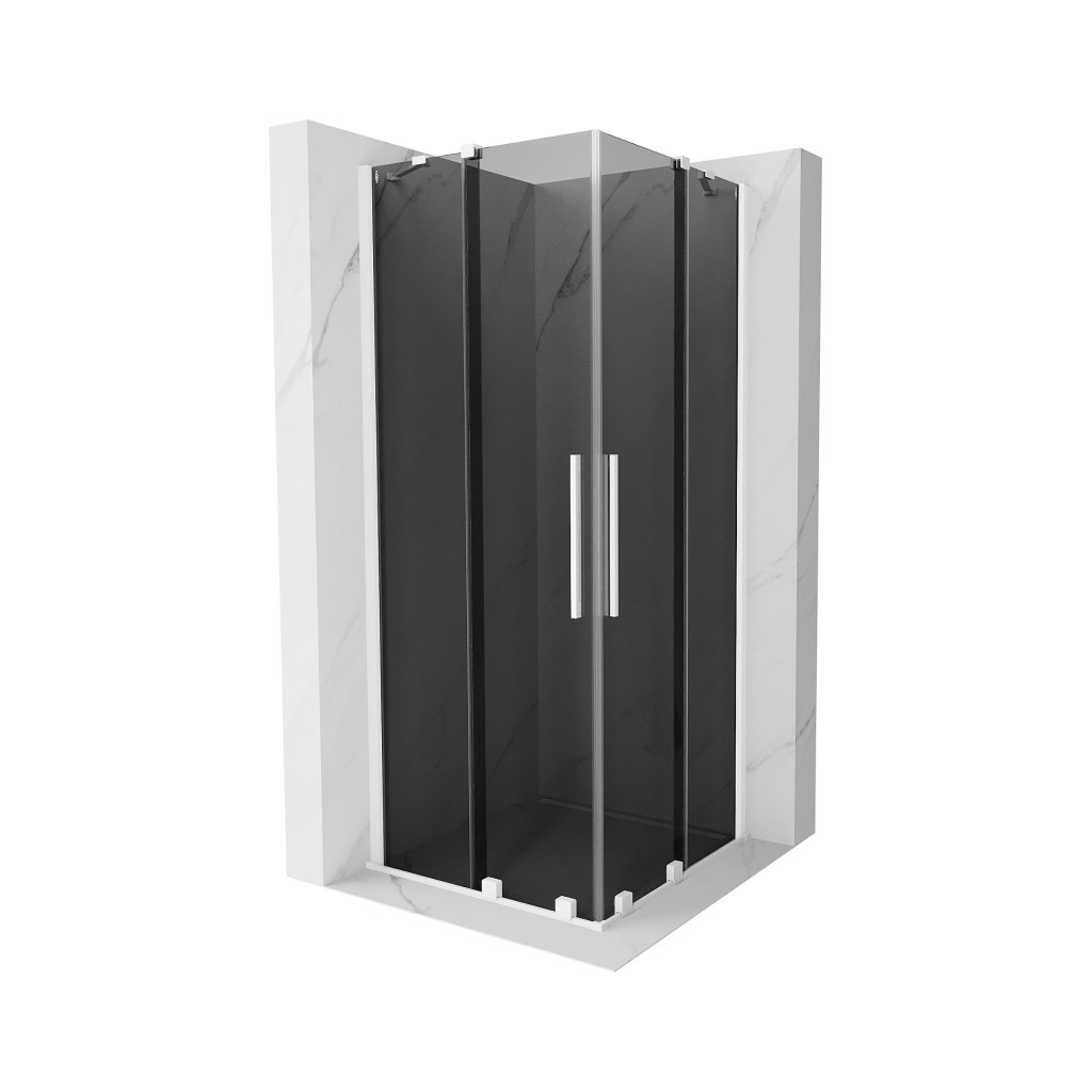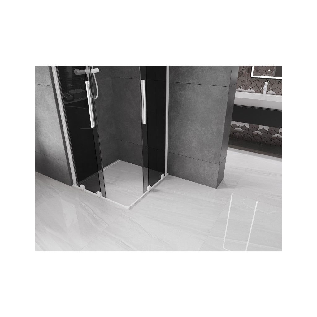 Mexen Velar Duo, sprchový kout s posuvnými dveřmi 100 x 100 cm, 8mm šedé sklo, bílá matná, 871-100-100-42-20