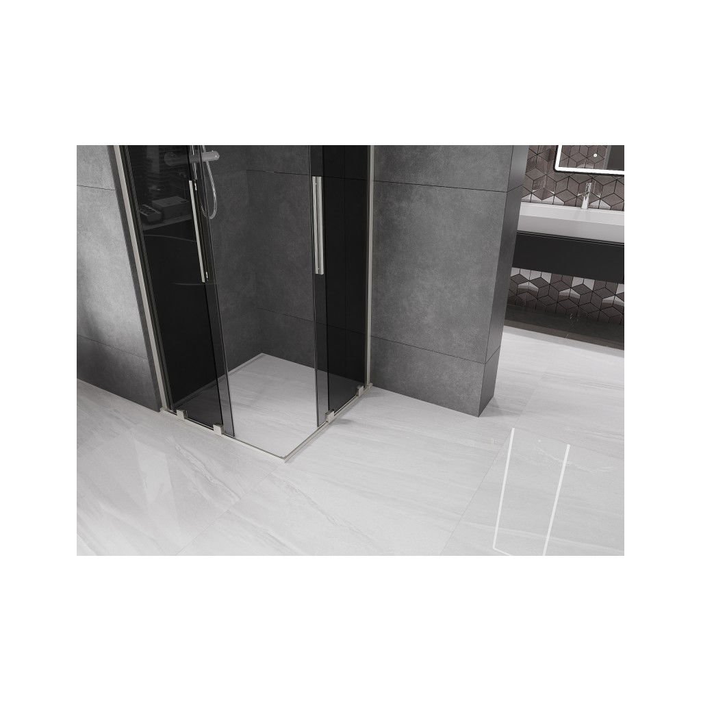 Mexen Velar Duo, sprchový kout s posuvnými dveřmi 100 x 100 cm, 8mm šedé sklo, broušená ocel, 871-100-100-42-97