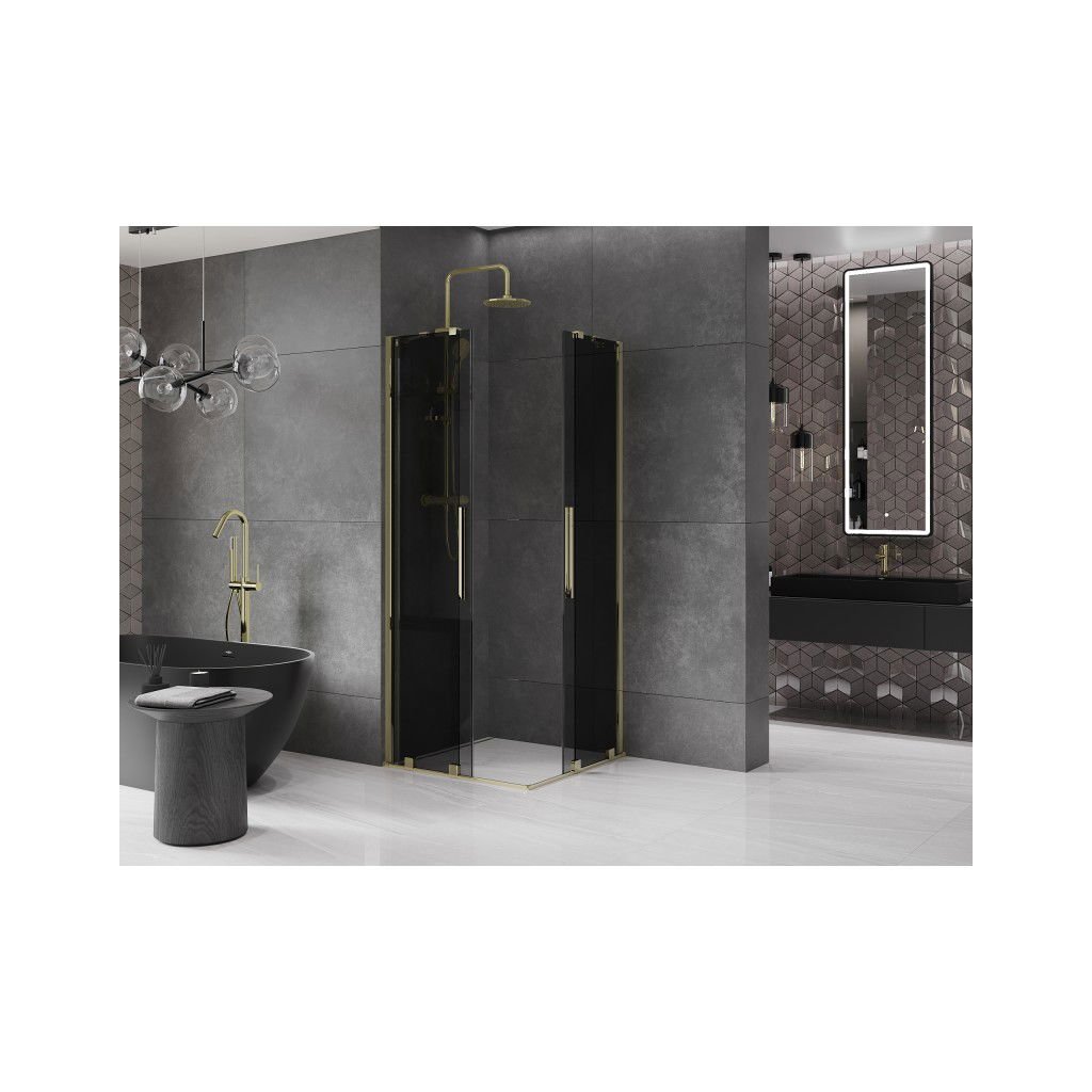 Mexen Velar Duo, sprchový kout s posuvnými dveřmi 100 x 100 cm, 8mm šedé sklo, zlatá lesklá, 871-100-100-42-50