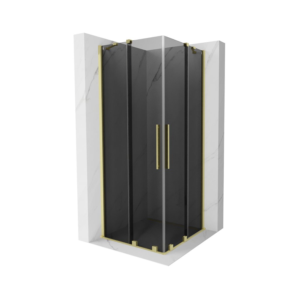 Mexen Velar Duo, sprchový kout s posuvnými dveřmi 100 x 100 cm, 8mm šedé sklo, zlatá matná, 871-100-100-42-55