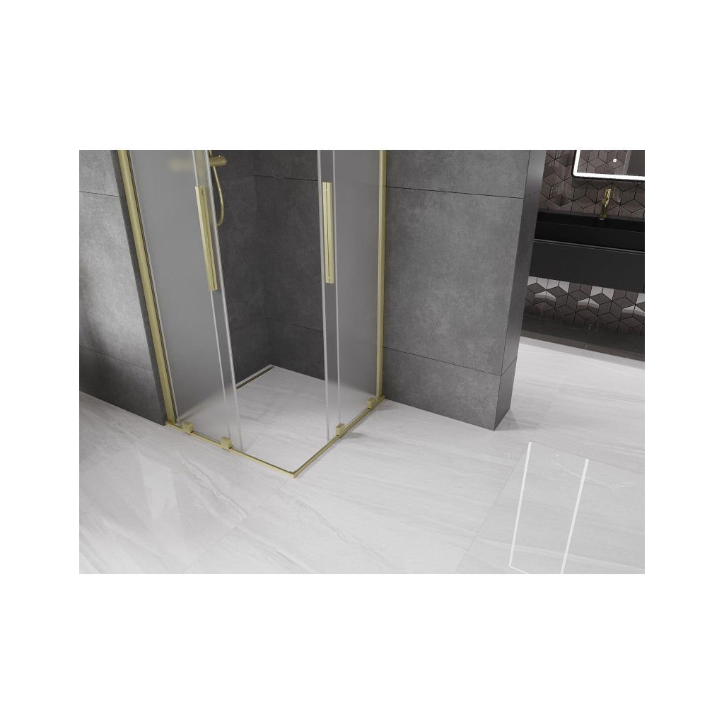 Mexen Velar Duo, sprchový kout s posuvnými dveřmi 100 x 100 cm, 8mm sklo námraza, zlatá matná, 871-100-100-32-55
