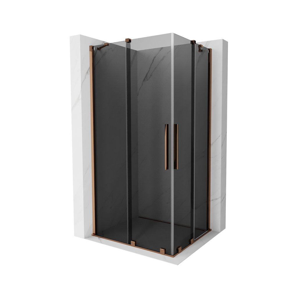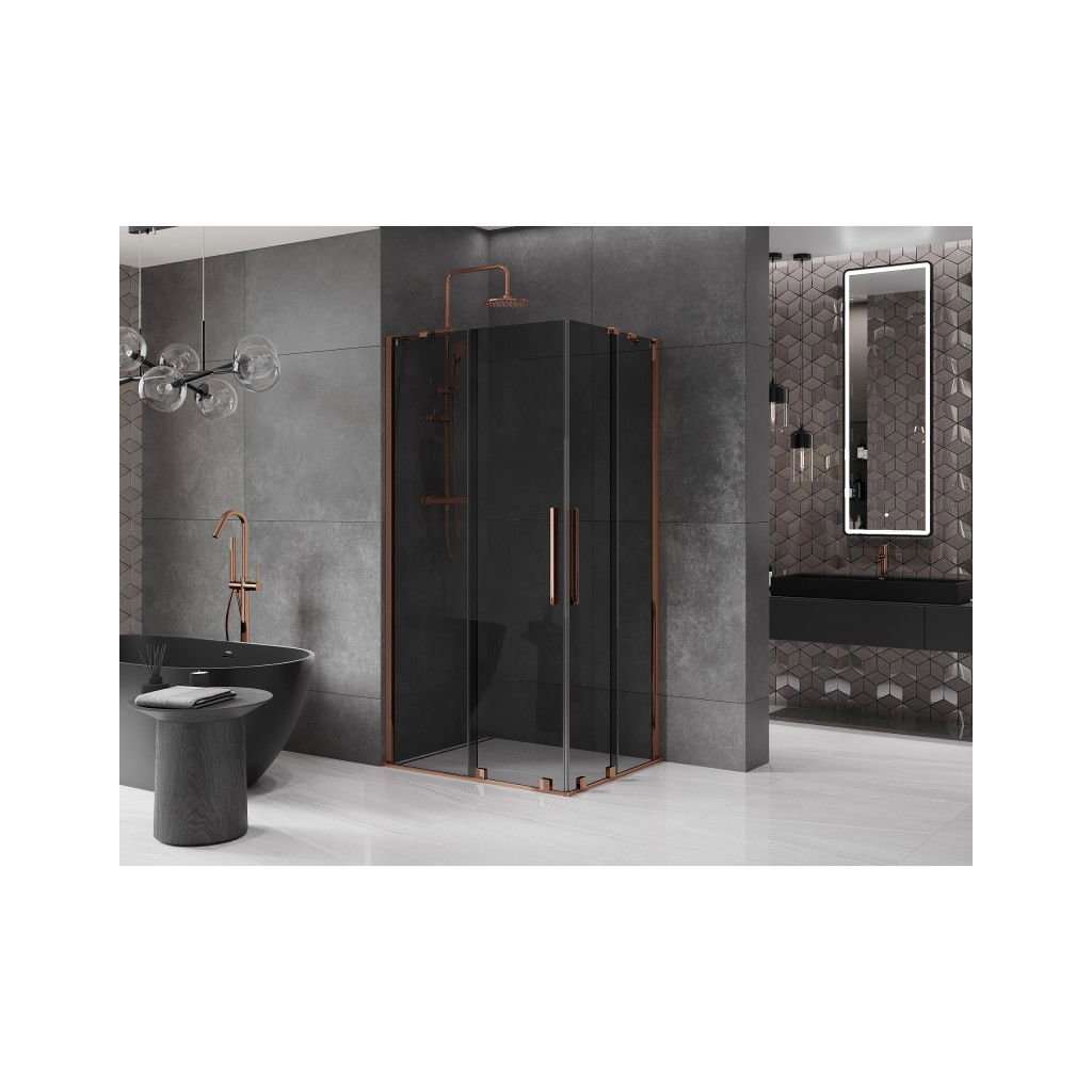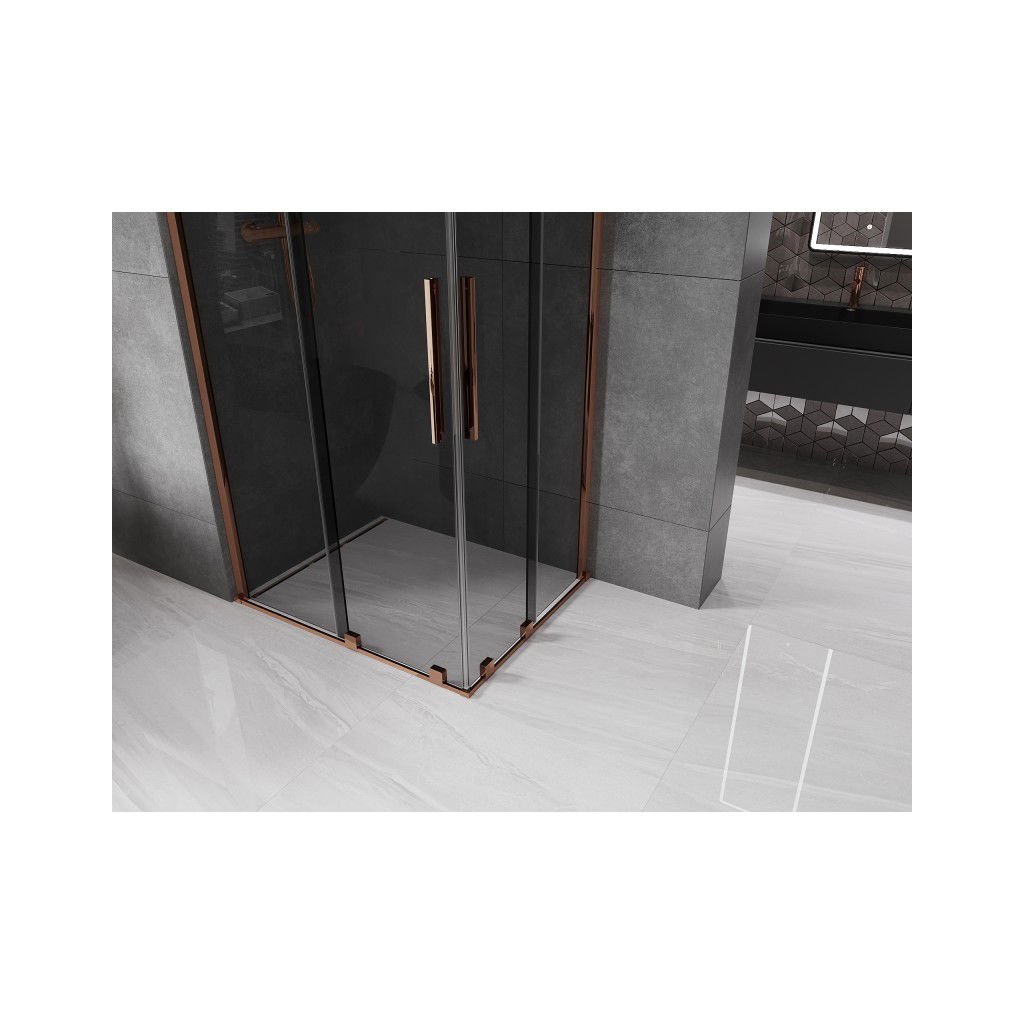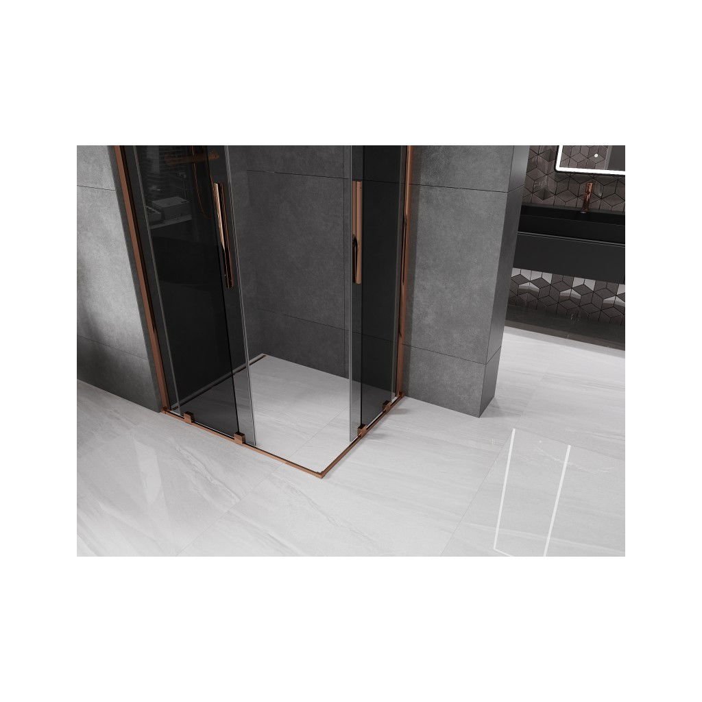 Mexen Velar Duo, sprchový kout s posuvnými dveřmi 100 x 90 cm, 8mm šedé sklo, růžové zlato, 871-100-090-42-60