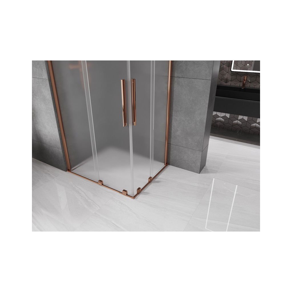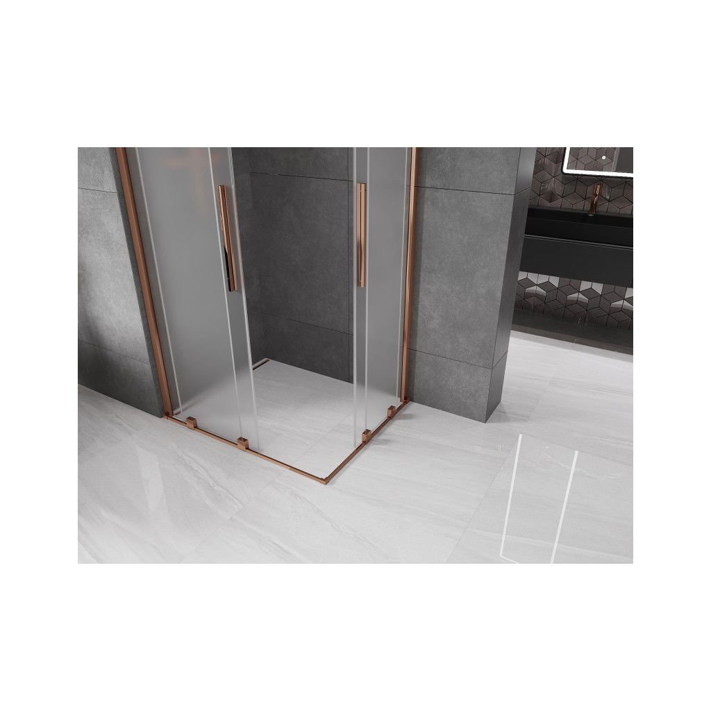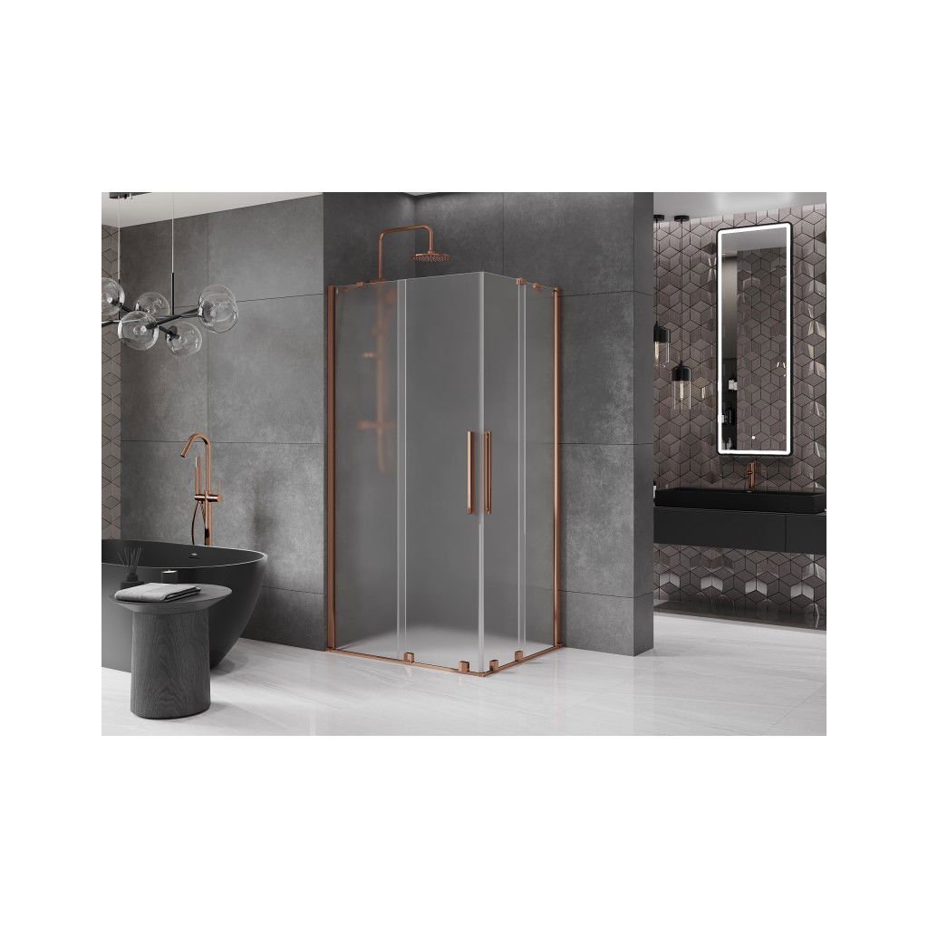 Mexen Velar Duo, sprchový kout s posuvnými dveřmi 100 x 90 cm, 8mm sklo námraza, růžové zlato, 871-100-090-32-60