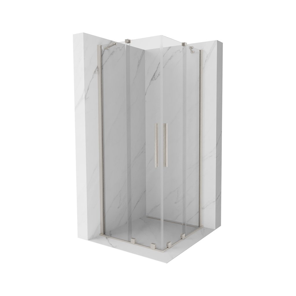 Mexen Velar Duo, sprchový kout s posuvnými dveřmi 80 x 80 cm, 8mm čiré sklo, broušená ocel, 871-080-080-02-97