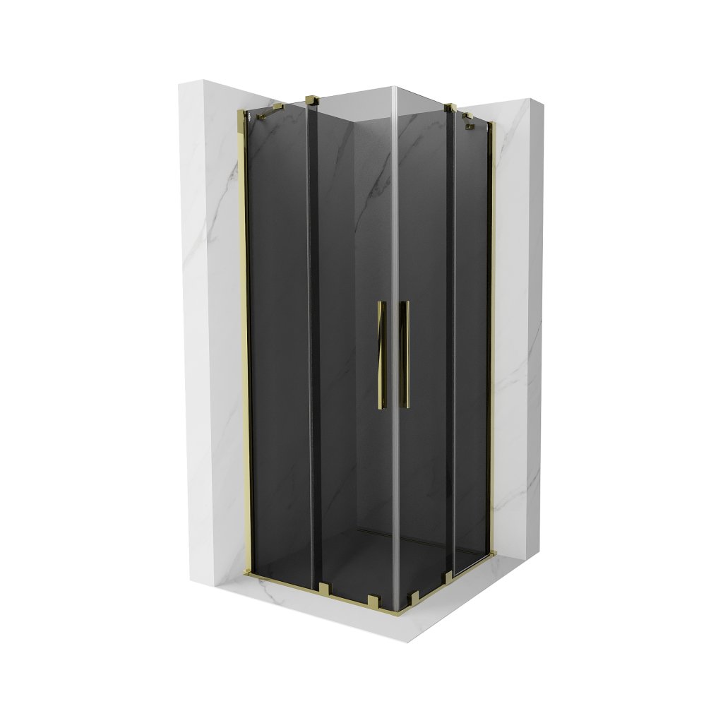 Mexen Velar Duo, sprchový kout s posuvnými dveřmi 80 x 80 cm, 8mm šedé sklo, zlatá lesklá, 871-080-080-42-50