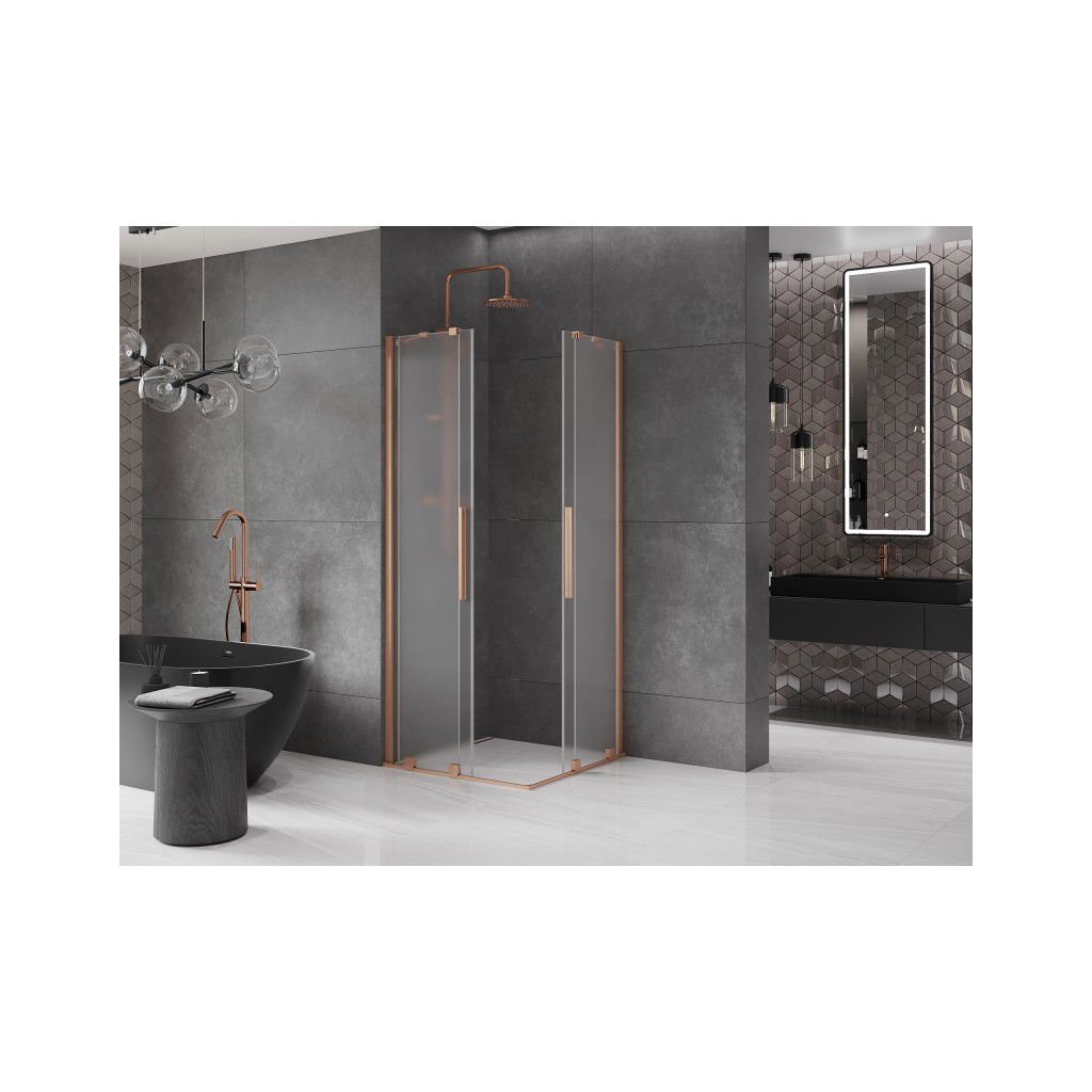 Mexen Velar Duo, sprchový kout s posuvnými dveřmi 80 x 80 cm, 8mm sklo námraza, měděná matná, 871-080-080-32-65