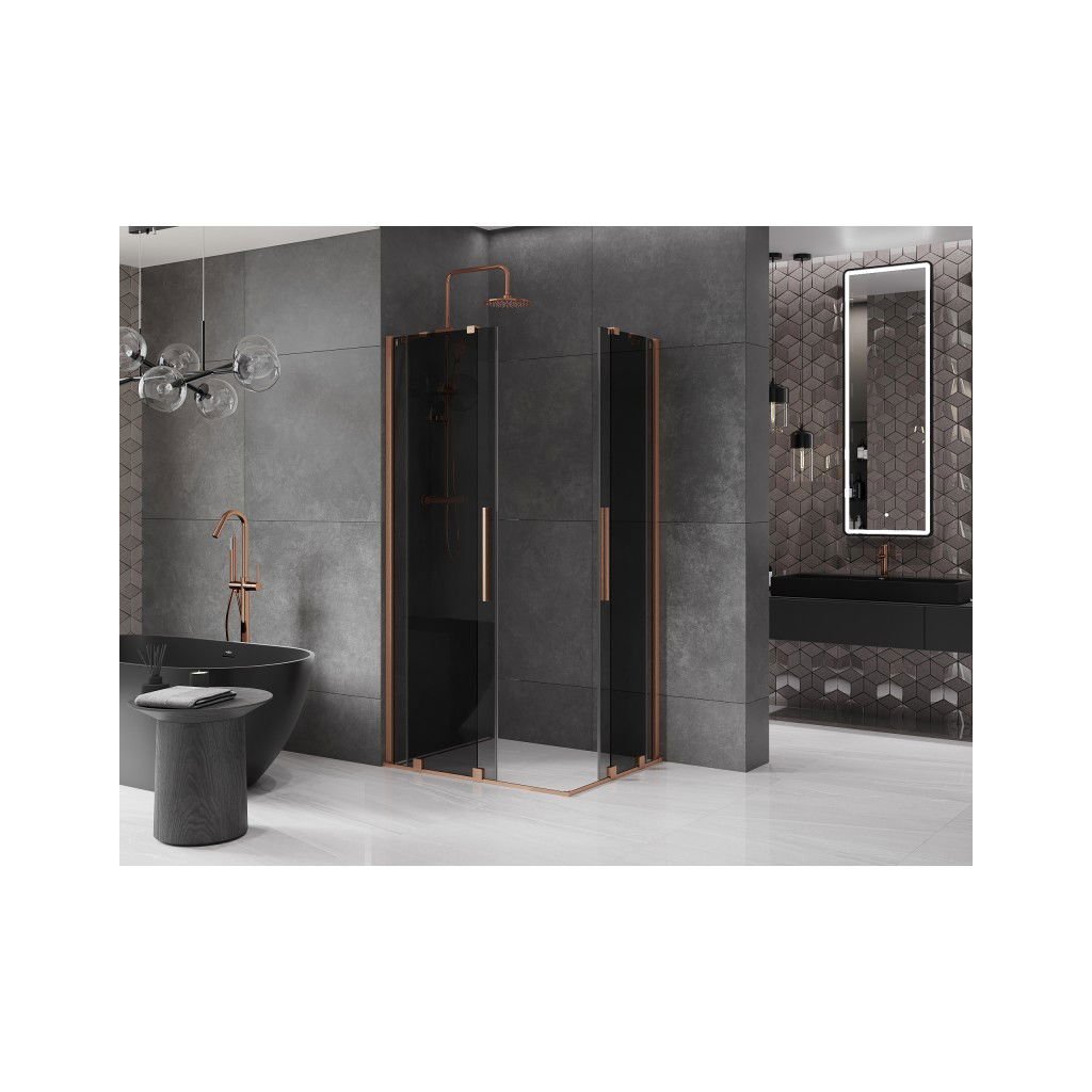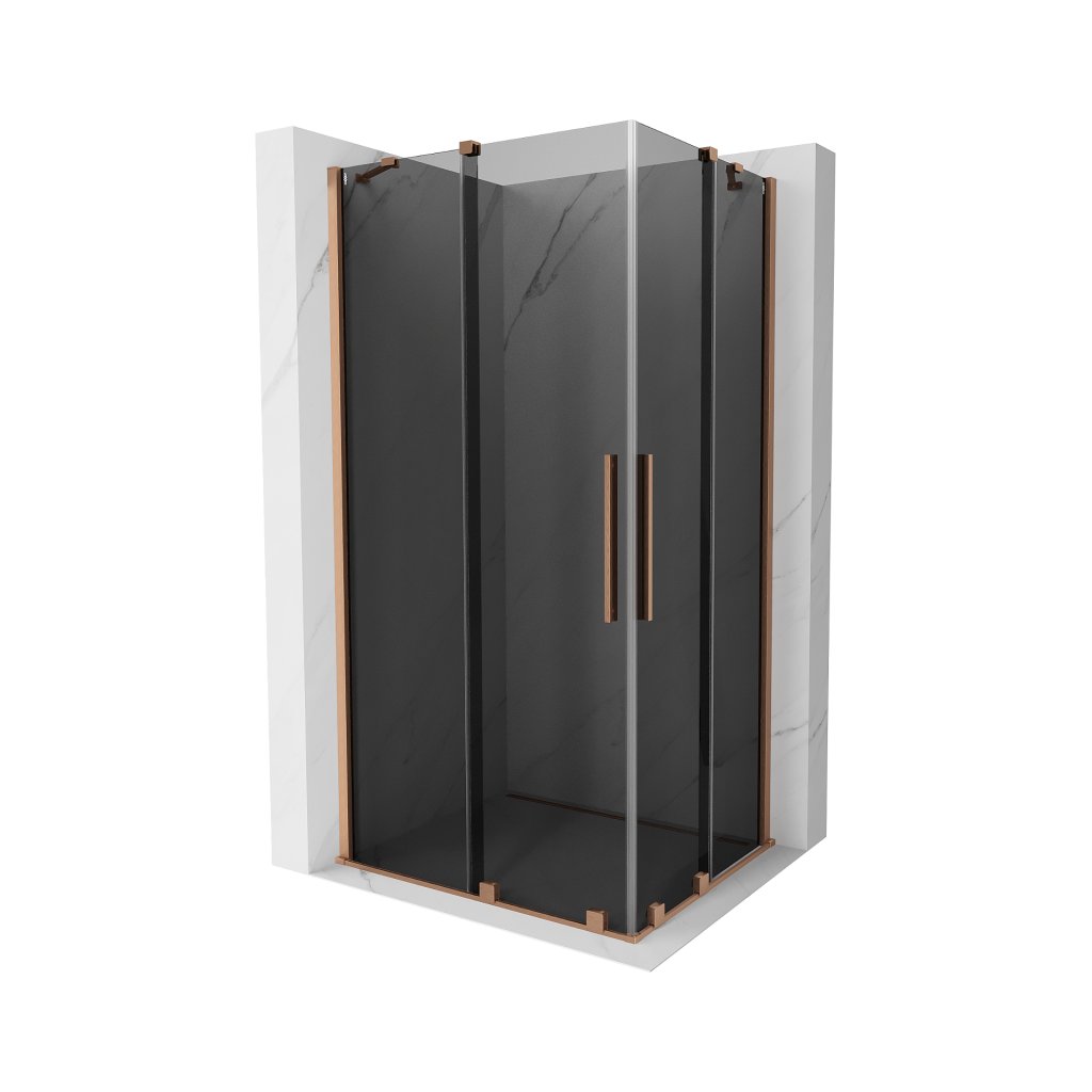 Mexen Velar Duo, sprchový kout s posuvnými dveřmi 90 x 80 cm, 8mm šedé sklo, měděná matná, 871-090-080-42-65