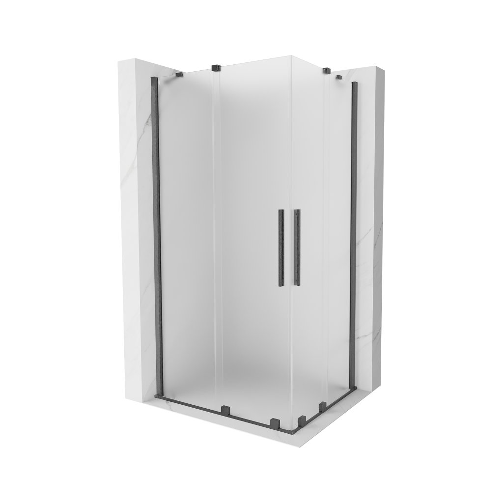 Mexen Velar Duo, sprchový kout s posuvnými dveřmi 90 x 80 cm, 8mm sklo námraza, grafit broušený, 871-090-080-32-66