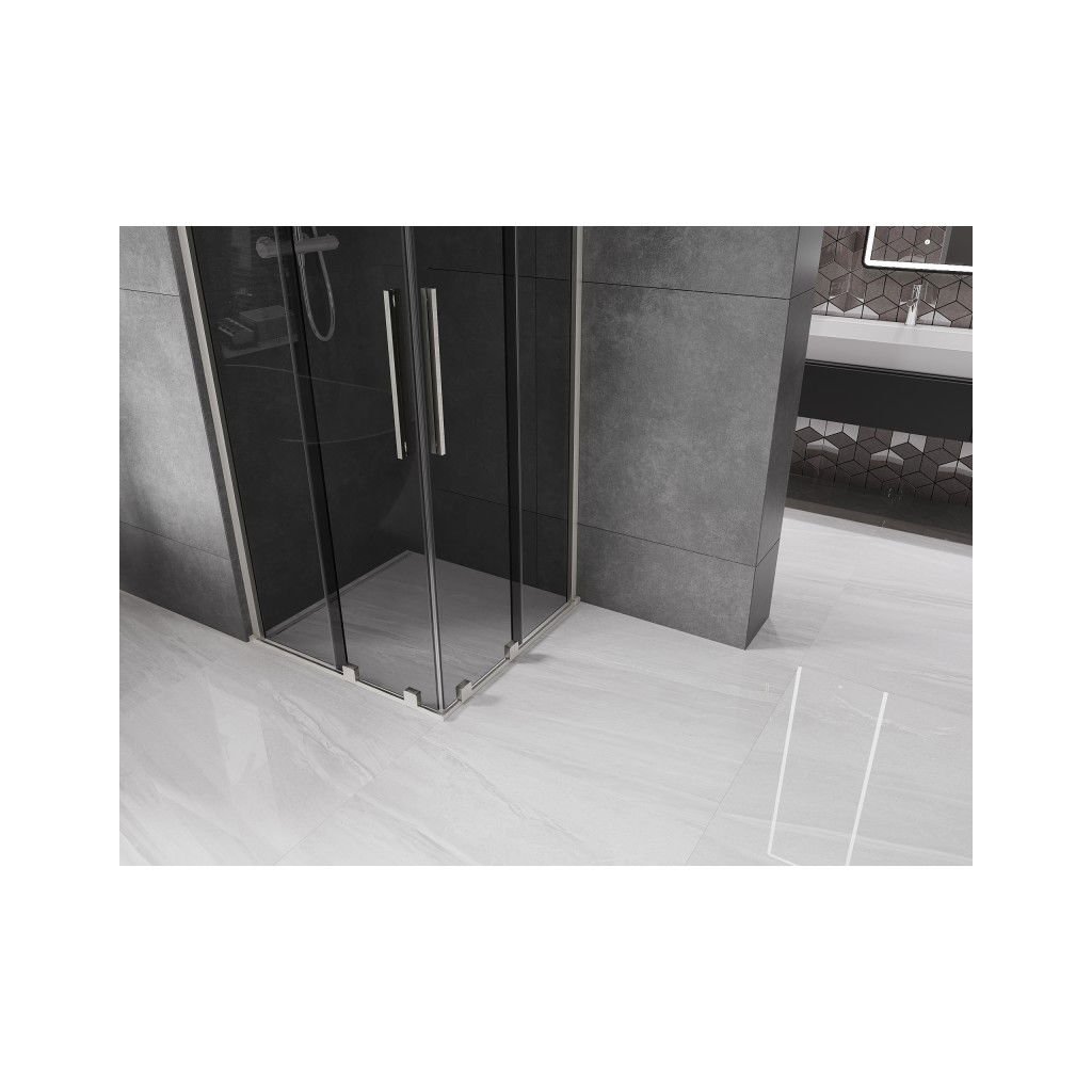 Mexen Velar Duo, sprchový kout s posuvnými dveřmi 90 x 90 cm, 8mm šedé sklo, broušená ocel, 871-090-090-42-97