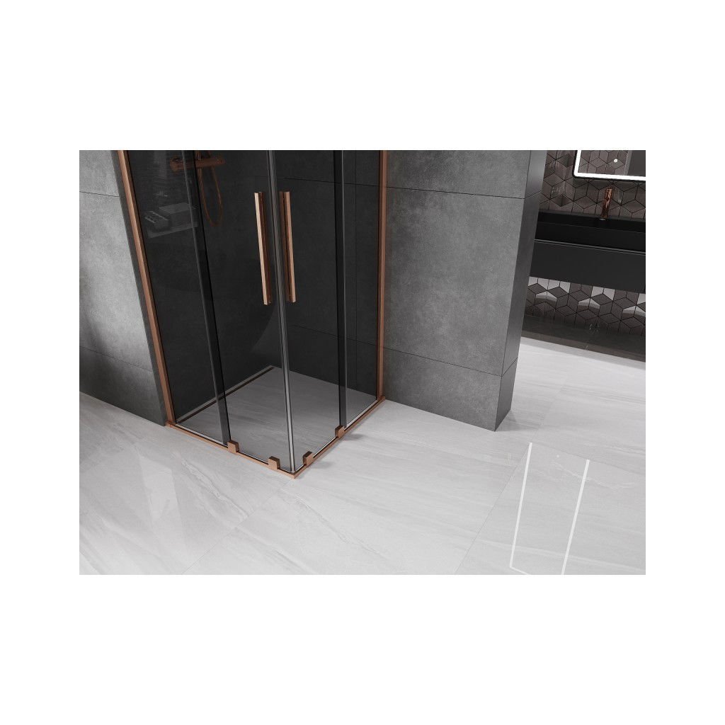 Mexen Velar Duo, sprchový kout s posuvnými dveřmi 90 x 90 cm, 8mm šedé sklo, měděná matná, 871-090-090-42-65