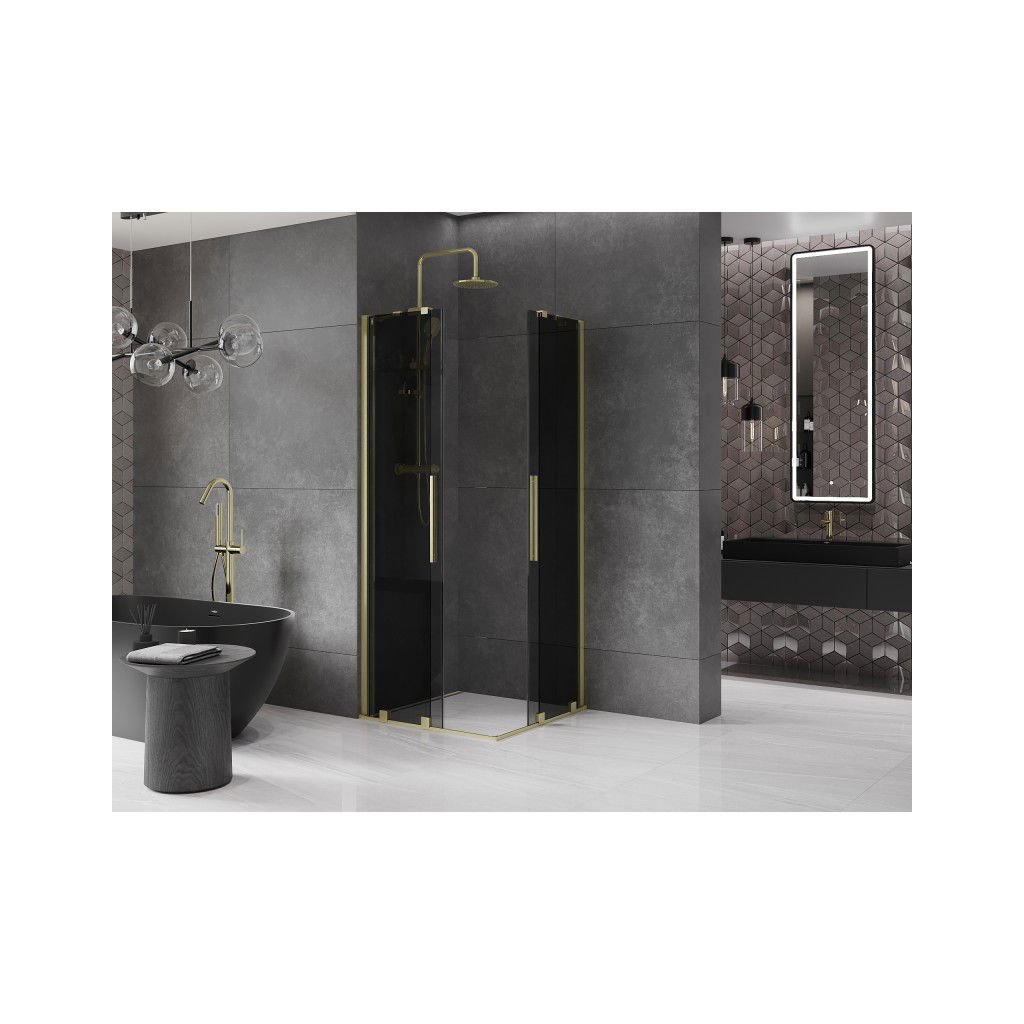Mexen Velar Duo, sprchový kout s posuvnými dveřmi 90 x 90 cm, 8mm šedé sklo, zlatá matná, 871-090-090-42-55