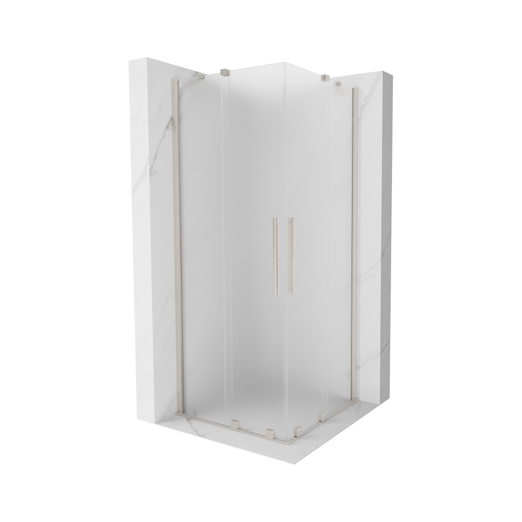 Mexen Velar Duo, sprchový kout s posuvnými dveřmi 90 x 90 cm, 8mm sklo námraza, broušená ocel, 871-090-090-32-97