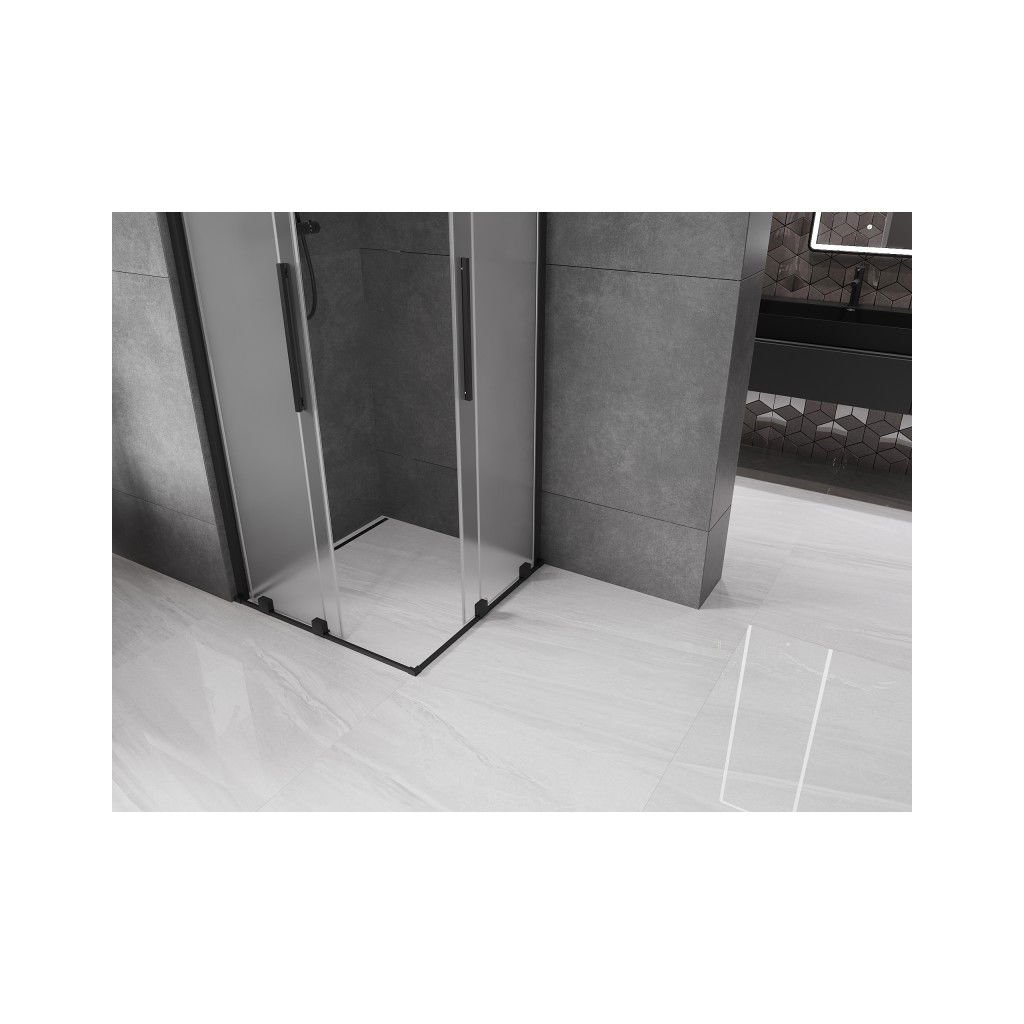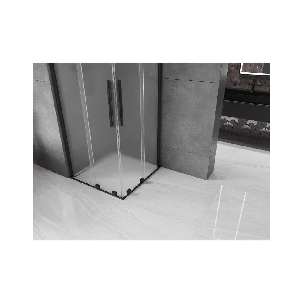 Mexen Velar Duo, sprchový kout s posuvnými dveřmi 90 x 90 cm, 8mm sklo námraza, černá matná, 871-090-090-32-70