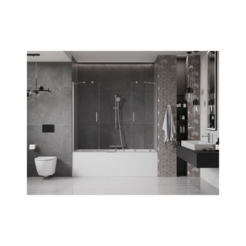 Mexen Velar Duo, vanová zástěna 2-křídlová s posuvnými dveřmi 190 x 150 cm, 8mm čiré sklo, chromový profil, 896-190-000-02-01