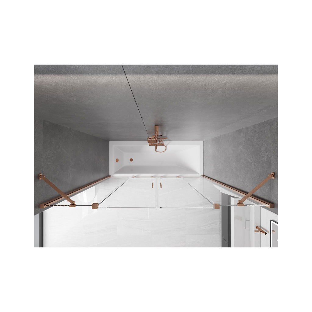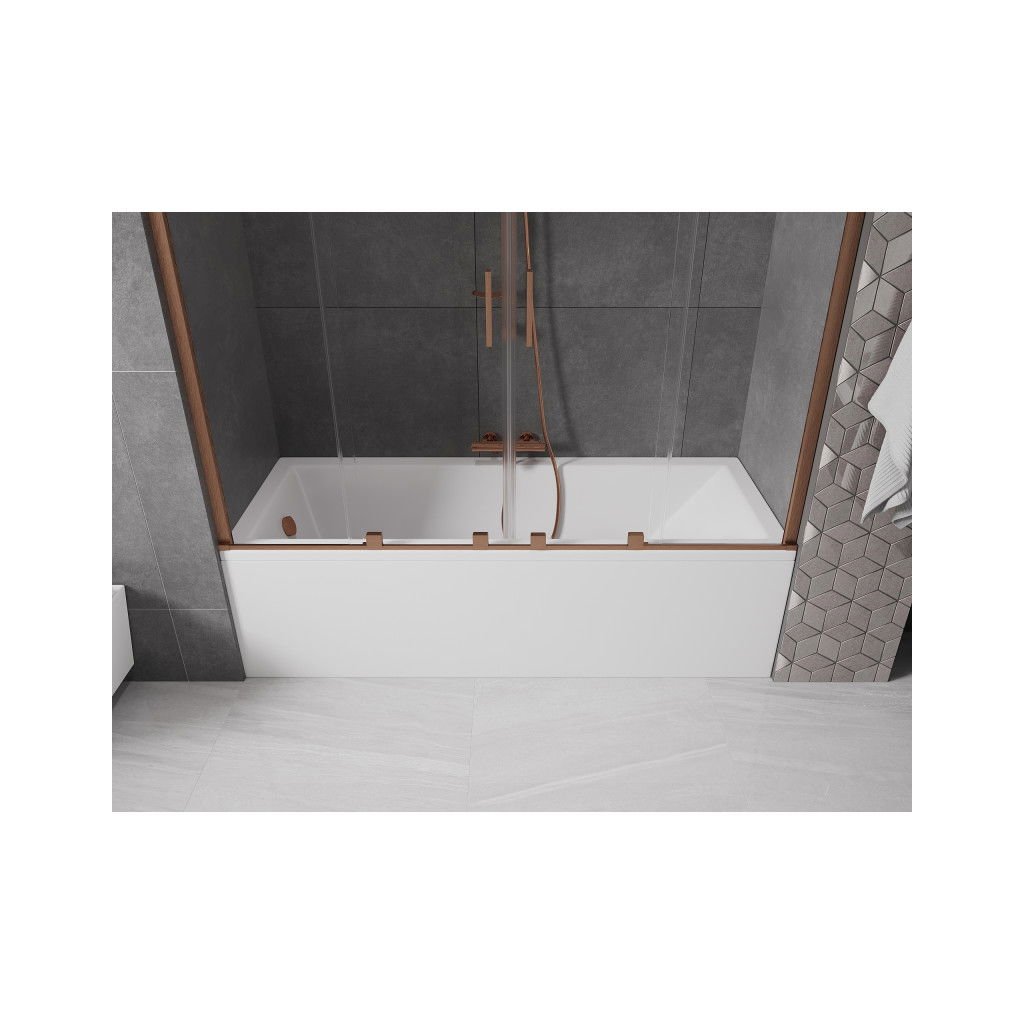 Mexen Velar Duo, vanová zástěna 2-křídlová s posuvnými dveřmi 190 x 150 cm, 8mm čiré sklo, měděný matný profil, 896-190-000-02-65