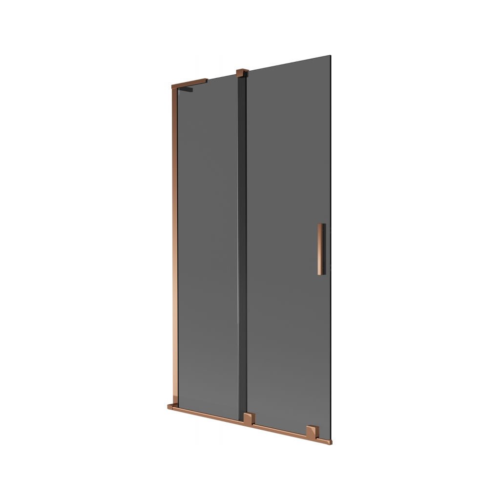 Mexen Velar L, 2-křídlová posuvná vanová zástěna 100 x 150 cm, 8mm šedé sklo, růžové zlato, 896-100-003-41-60