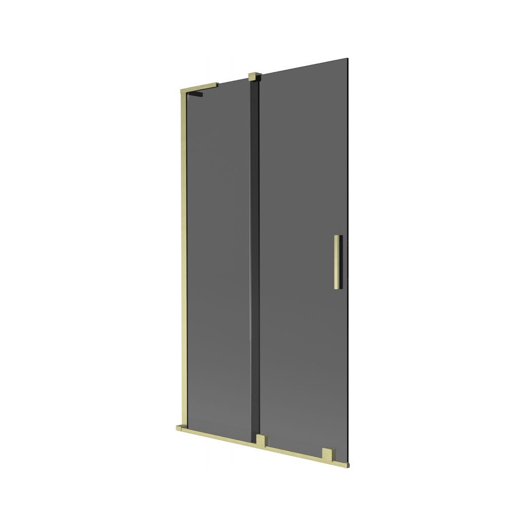 Mexen Velar L, 2-křídlová posuvná vanová zástěna 100 x 150 cm, 8mm šedé sklo, zlatá matná, 896-100-003-41-55