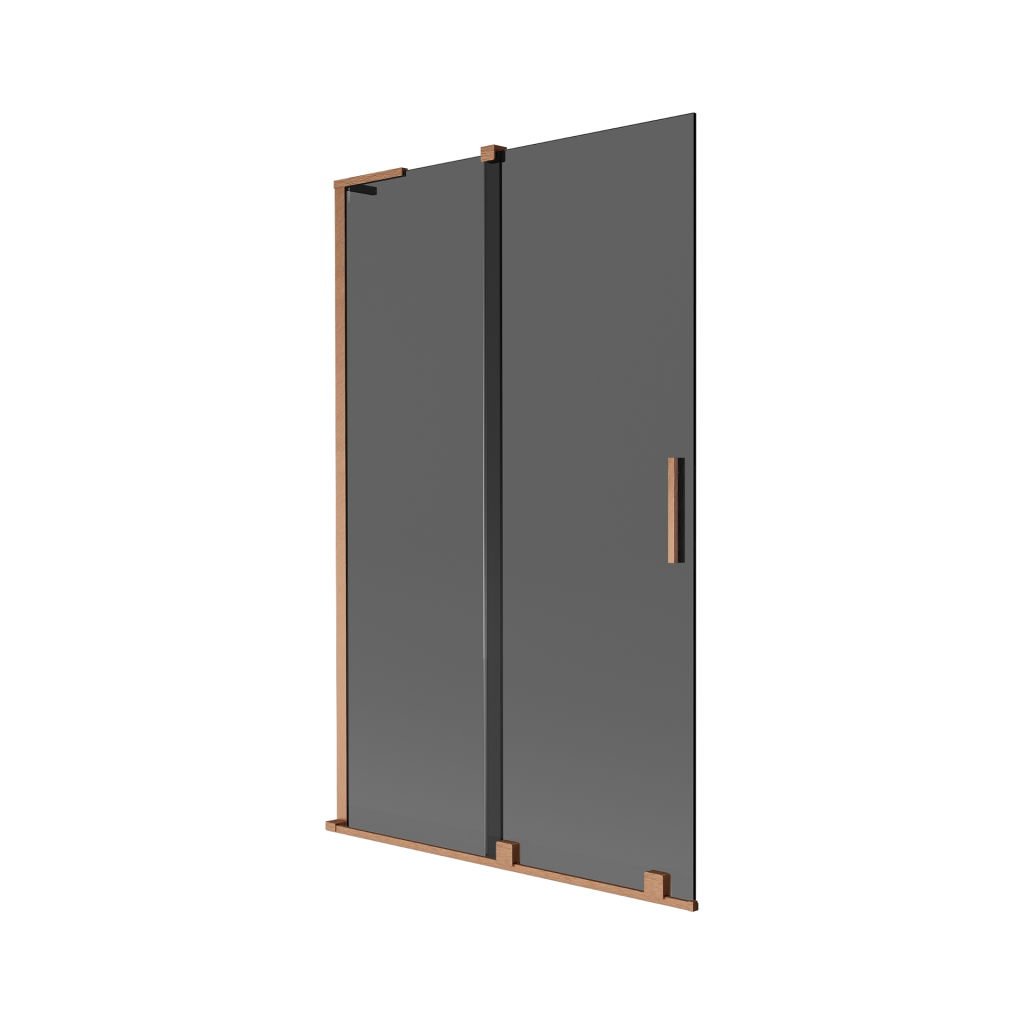 Mexen Velar L, 2-křídlová posuvná vanová zástěna 110 x 150 cm, 8mm šedé sklo, měděná matná, 896-110-003-41-65