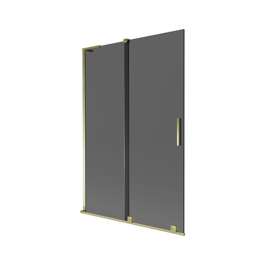 Mexen Velar L, 2-křídlová posuvná vanová zástěna 120 x 150 cm, 8mm šedé sklo, zlatá lesklá, 896-120-003-41-50