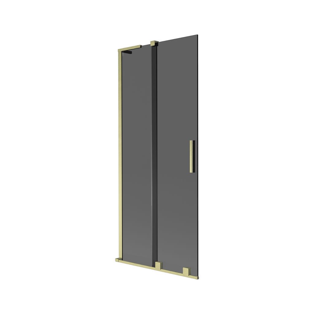 Mexen Velar L, 2-křídlová posuvná vanová zástěna 80 x 150 cm, 8mm šedé sklo, zlatá matná, 896-080-003-41-55
