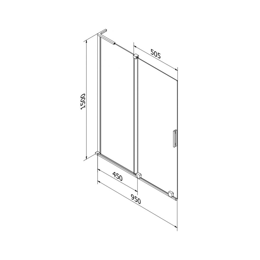 Mexen Velar L, 2-křídlová posuvná vanová zástěna 95 x 150 cm, 8mm šedé sklo, broušená ocel, 896-095-003-41-97