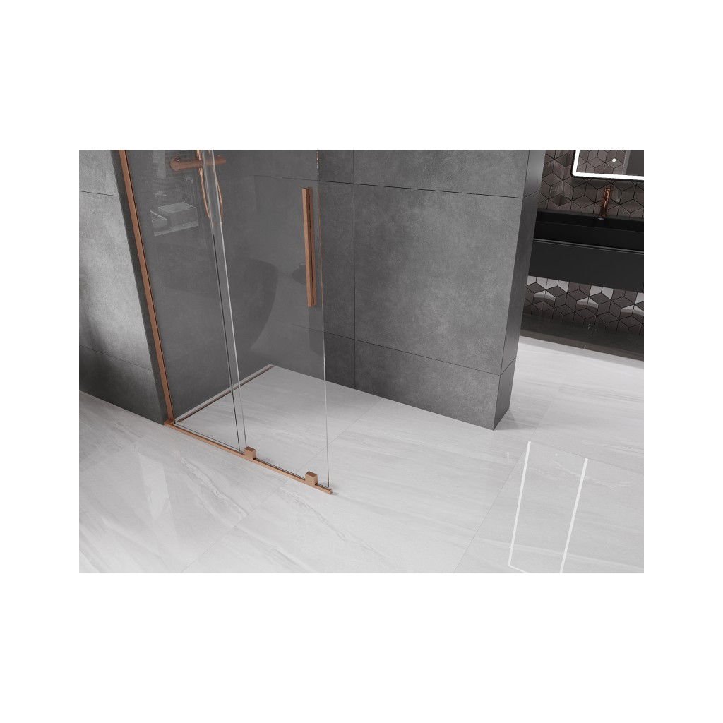 Mexen Velar L, posuvná sprchová zástěna Walk-in 100 x 200 cm, 8mm čiré sklo, měděná matná, 871-100-003-03-65