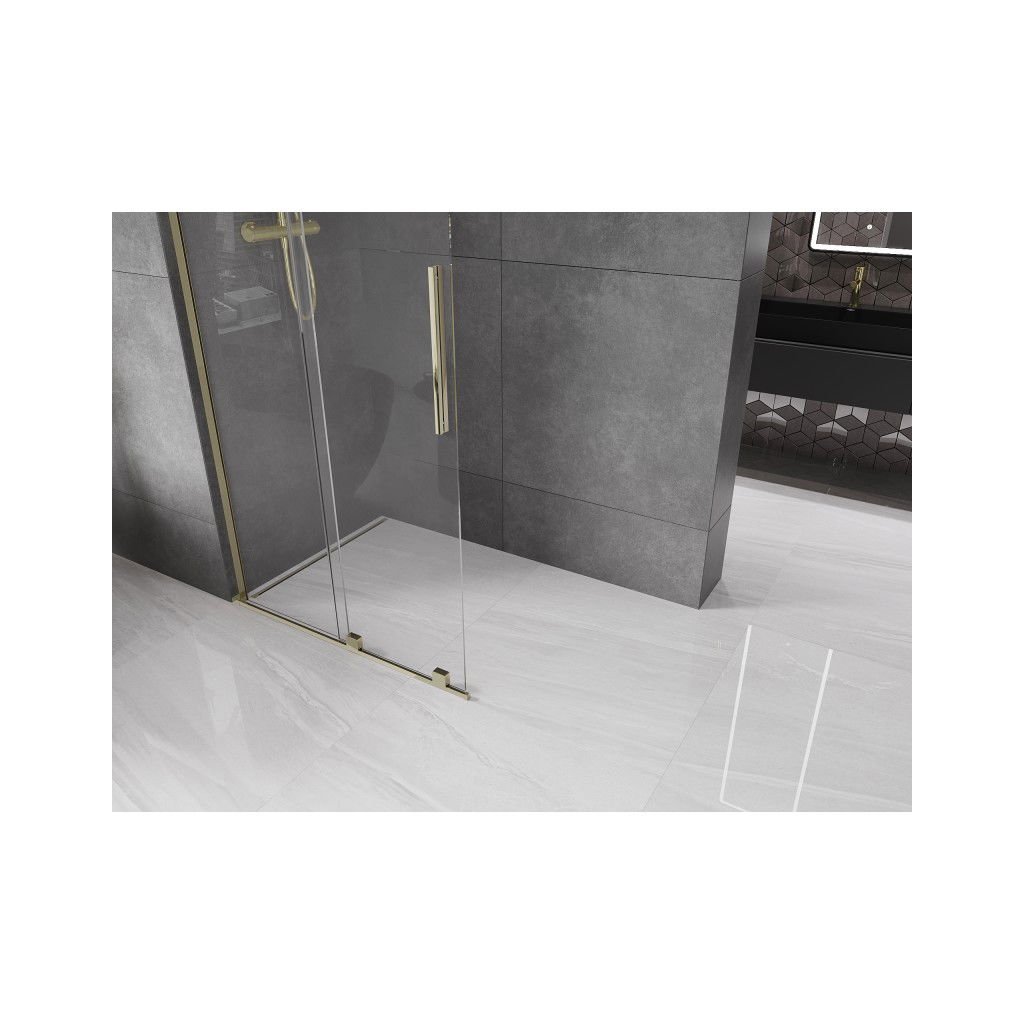 Mexen Velar L, posuvná sprchová zástěna Walk-in 100 x 200 cm, 8mm čiré sklo, zlatá lesklá, 871-100-003-03-50