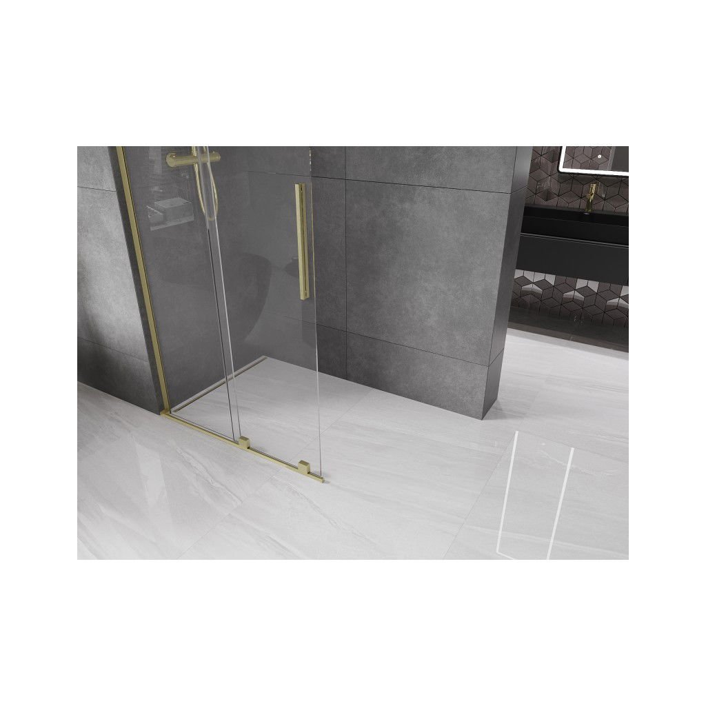 Mexen Velar L, posuvná sprchová zástěna Walk-in 100 x 200 cm, 8mm čiré sklo, zlatá matná, 871-100-003-03-55