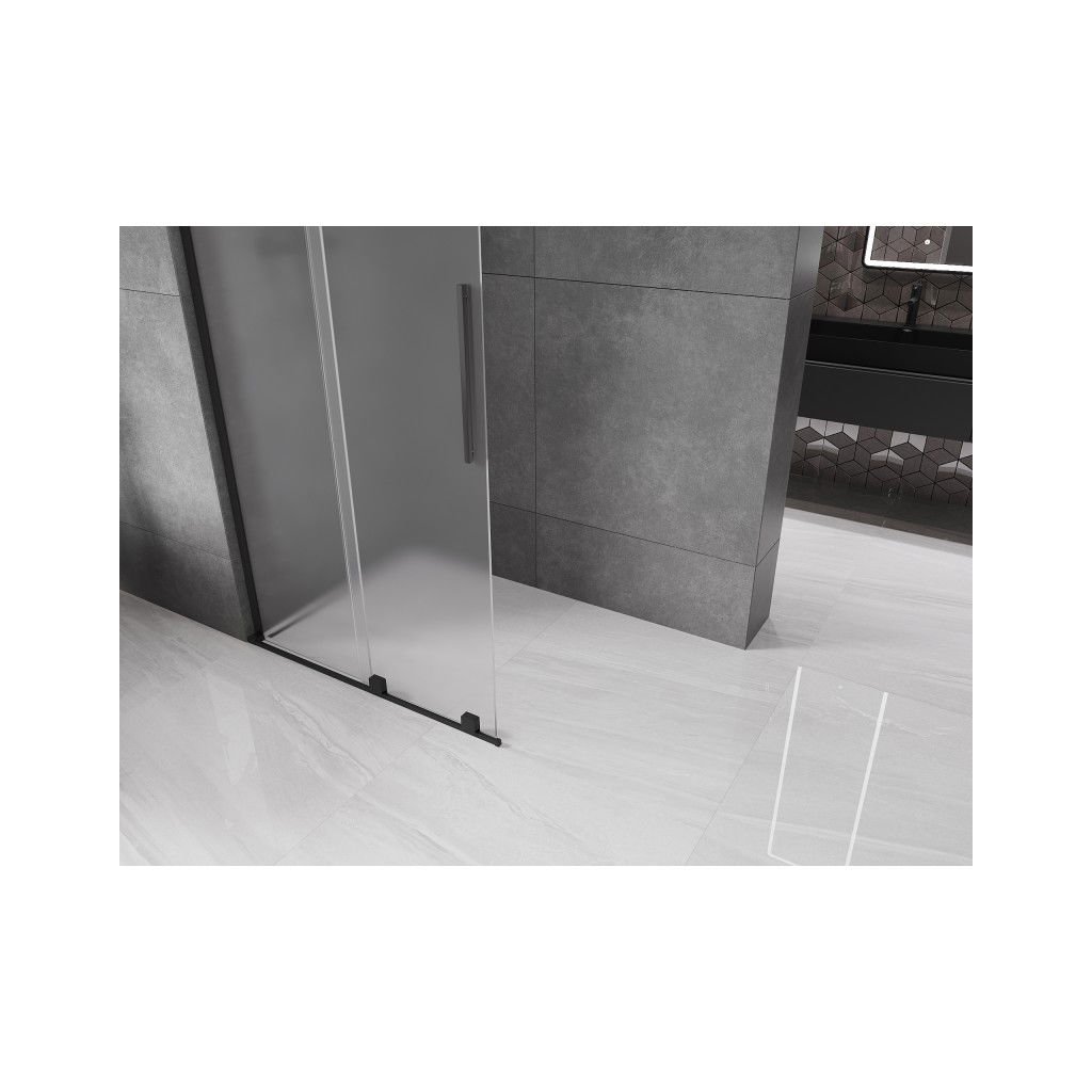Mexen Velar L, posuvná sprchová zástěna Walk-in 100 x 200 cm, 8mm sklo námraza, černá matná, 871-100-003-33-70